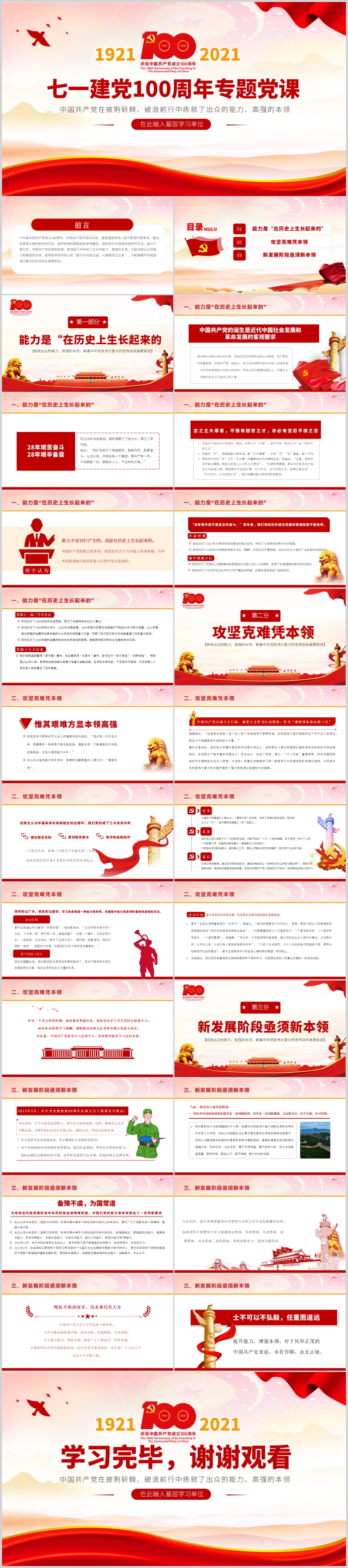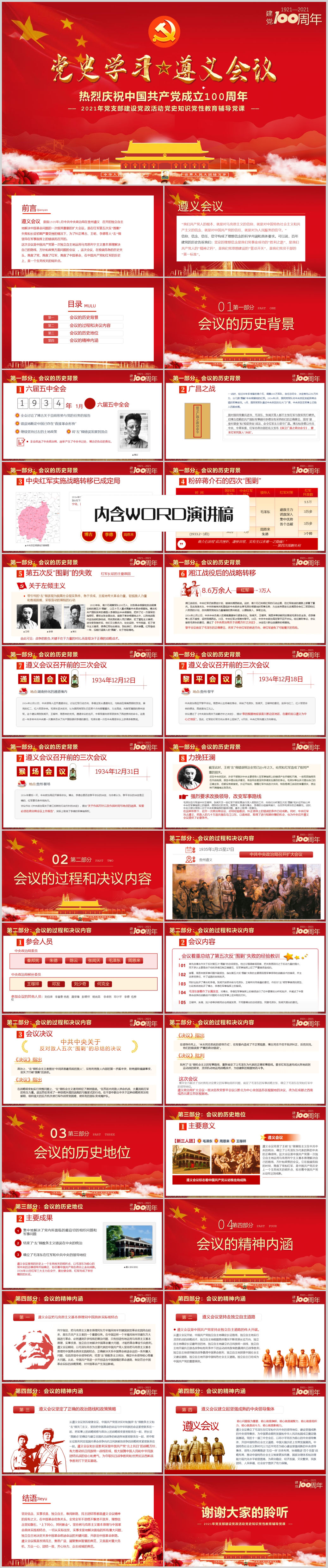 七一建党节党史党课建党100周年遵义会议党史学习教育党课PPT模板(内含WORD演