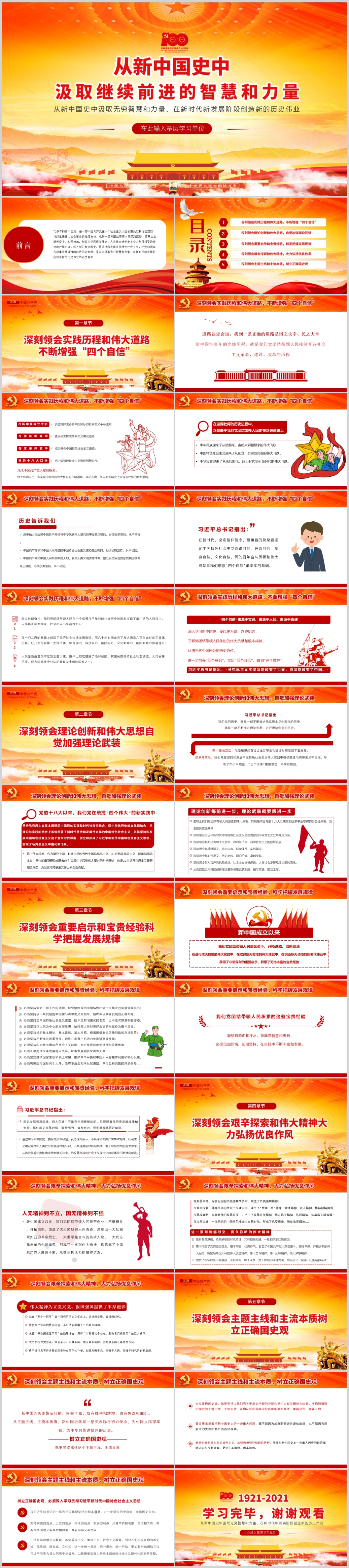 七一建党节从党的百年历史中汲取继续前进的智慧力量PPT模板