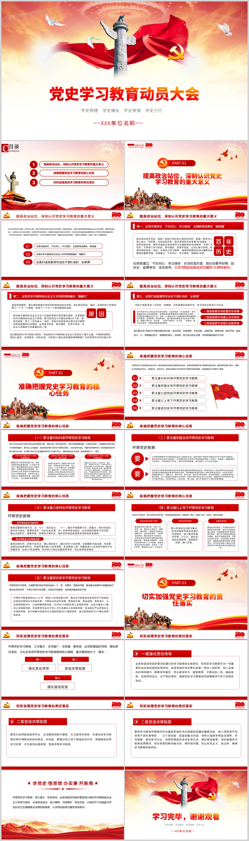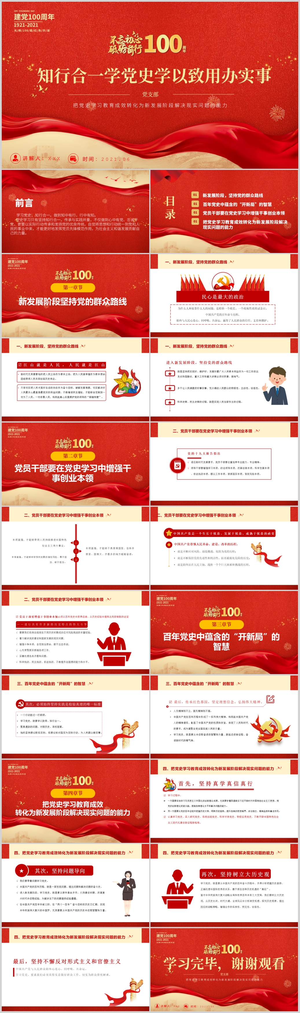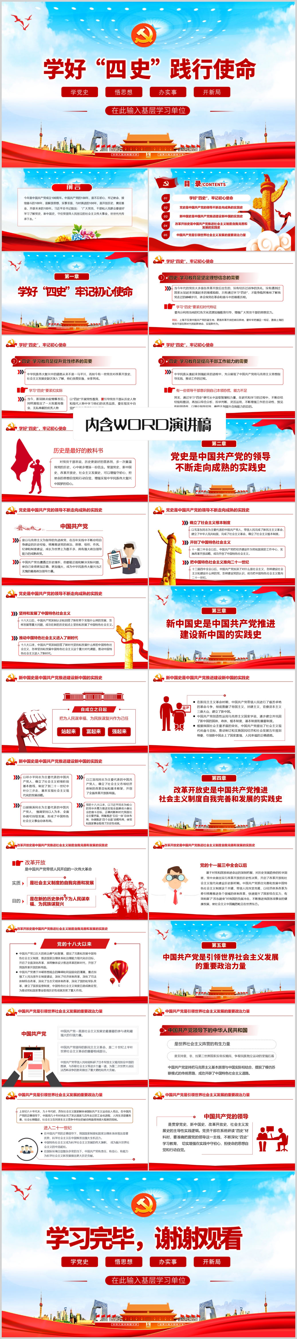 建党100周年学党史悟思想办实事学好四史践行使命PPT模板(内含WORD演讲稿)
