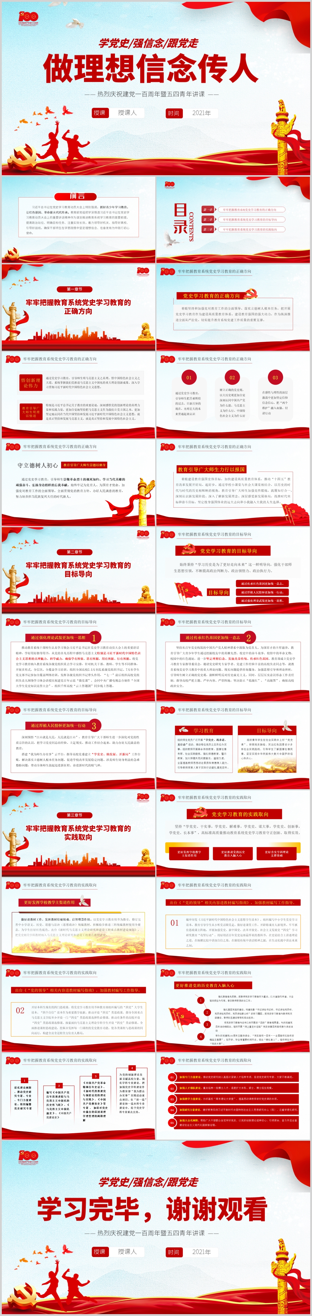 七一建党100周年做理想信念传人暨五四青年党课PPT模板