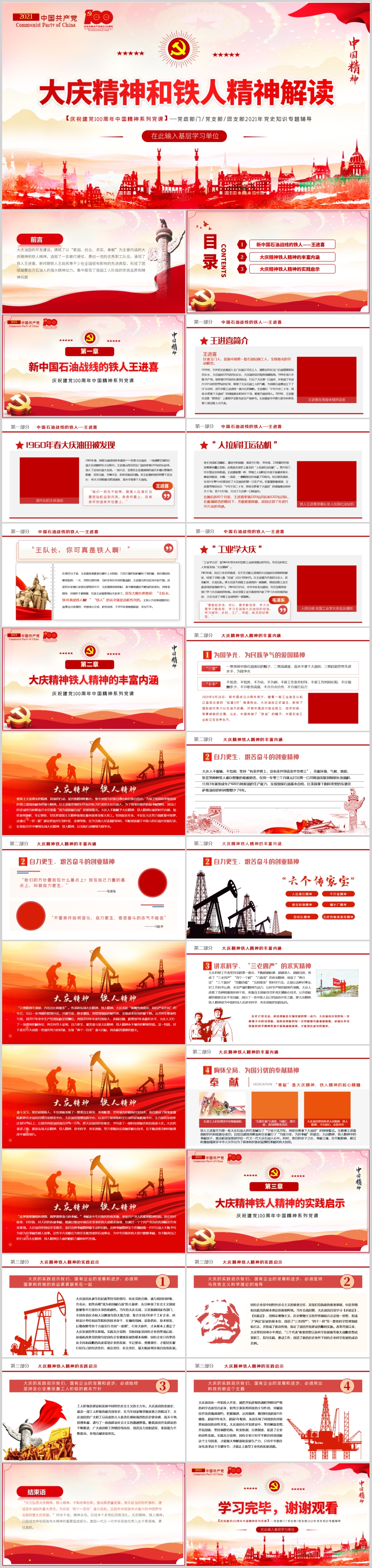 建党100周年大庆精神铁人精神王进喜党史学习教育党课PPT模板