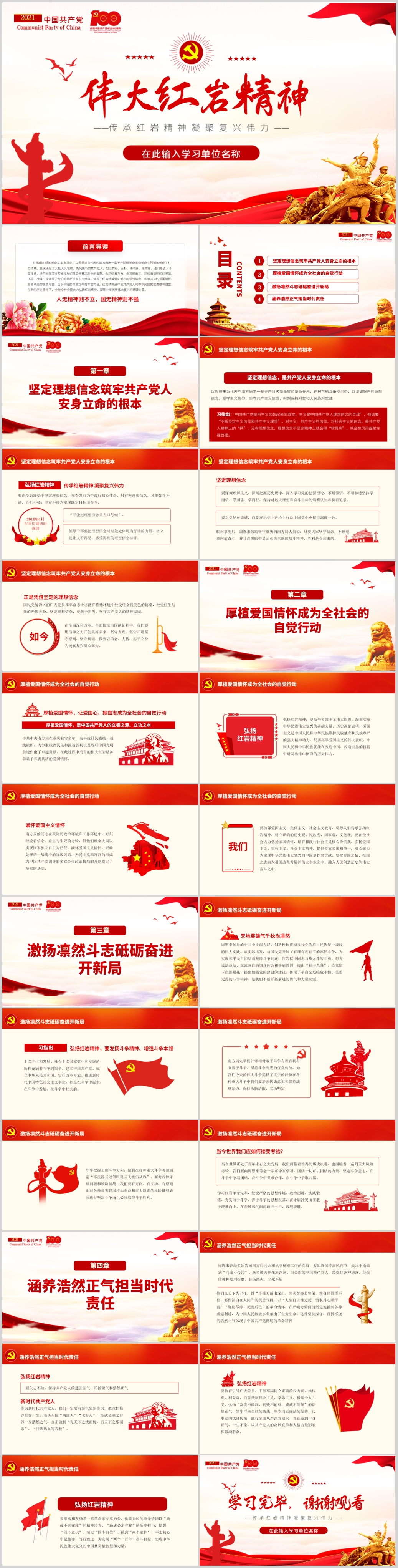 学习弘扬井冈山精神百年党史教育党课ppt模板(内含WORD演讲稿)