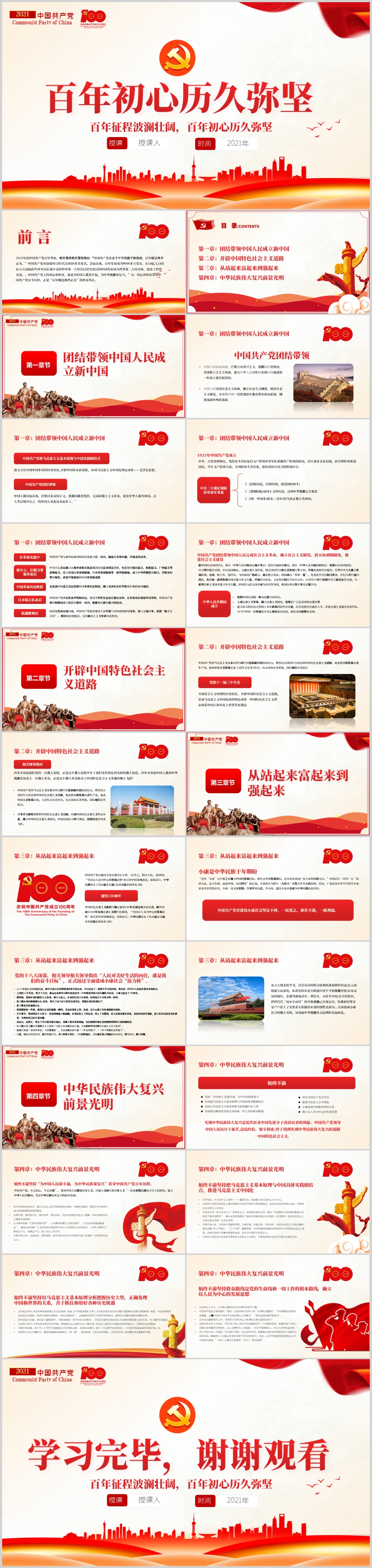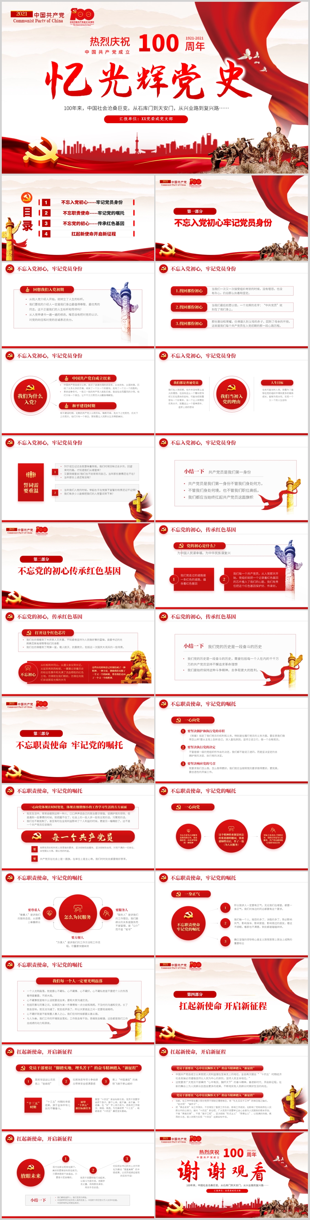 百年初心历久弥坚百年征程波澜壮阔建党100周年PPT模板