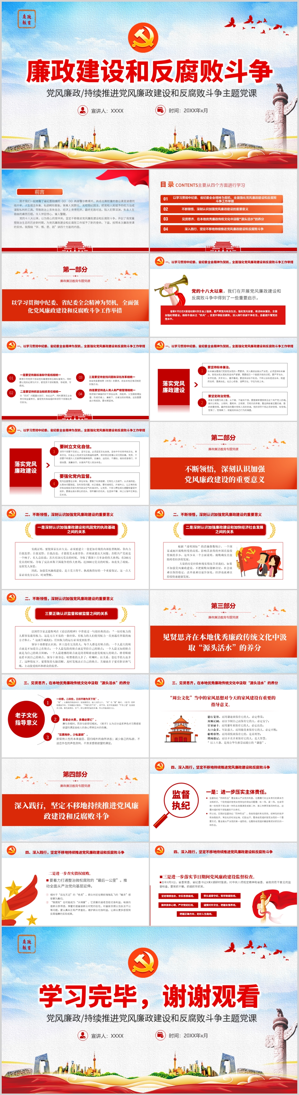学悟思践持续推进党风廉政建设和反腐败斗争区委书记党课PPT模板(内含WORD演