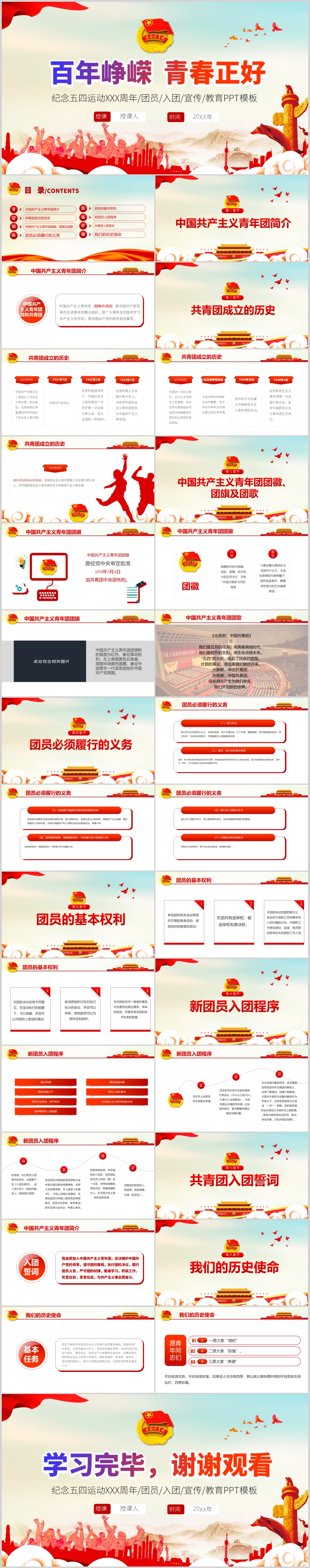弘扬五四精神百年峥嵘青春正好五四运动共青团入团团课PPT模板