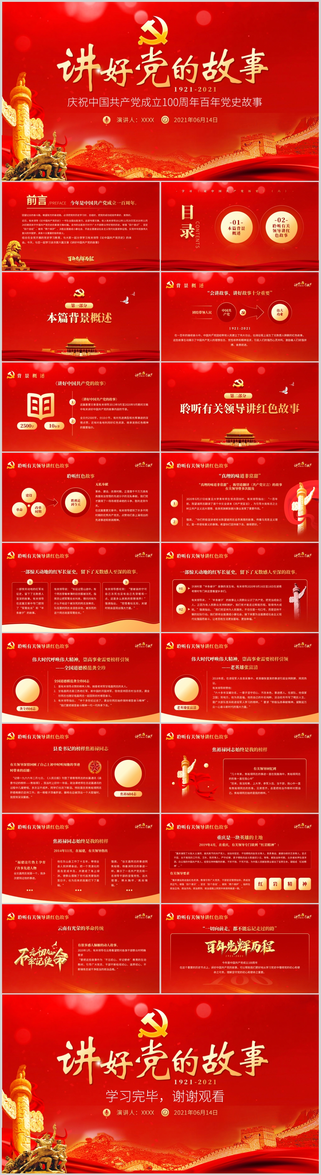 中国共产党成立100周年百年党史故事专题课件PPT模板(内含WORD演讲稿)