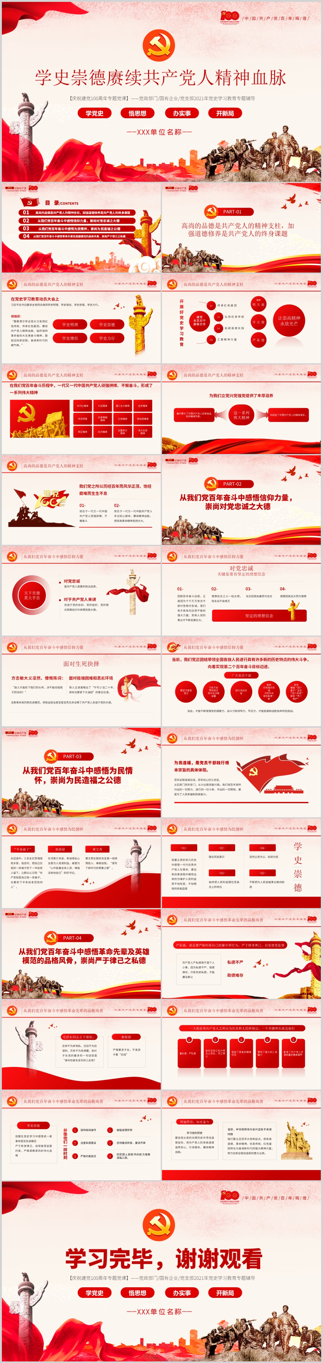 学史崇德中提升共产党人精神百年党史学习主题党课ppt模板