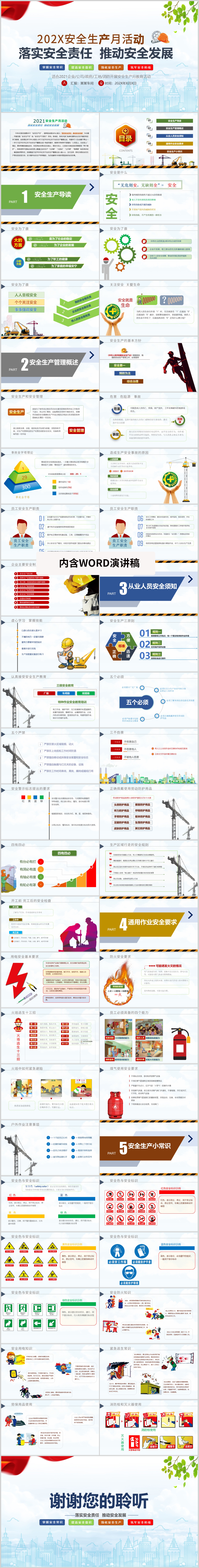2021安全生产月活动落实安全责任推动安全发展党课PPT模板(内含WORD演讲稿)