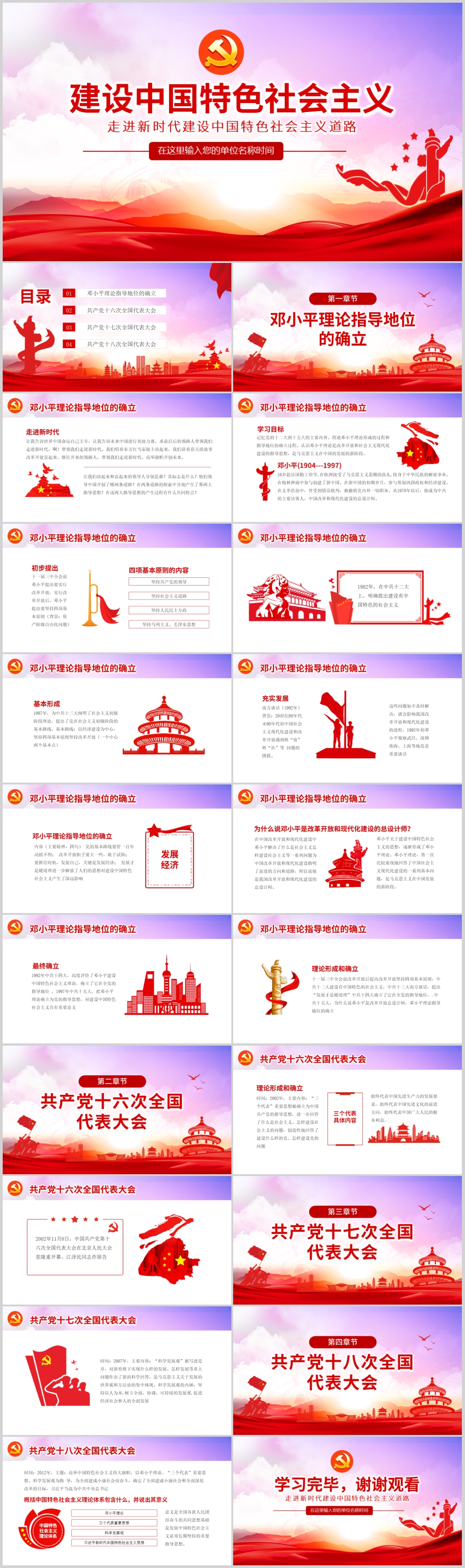 党员培训建设新时代中国特色社会主义道路专题党课PPT模板
