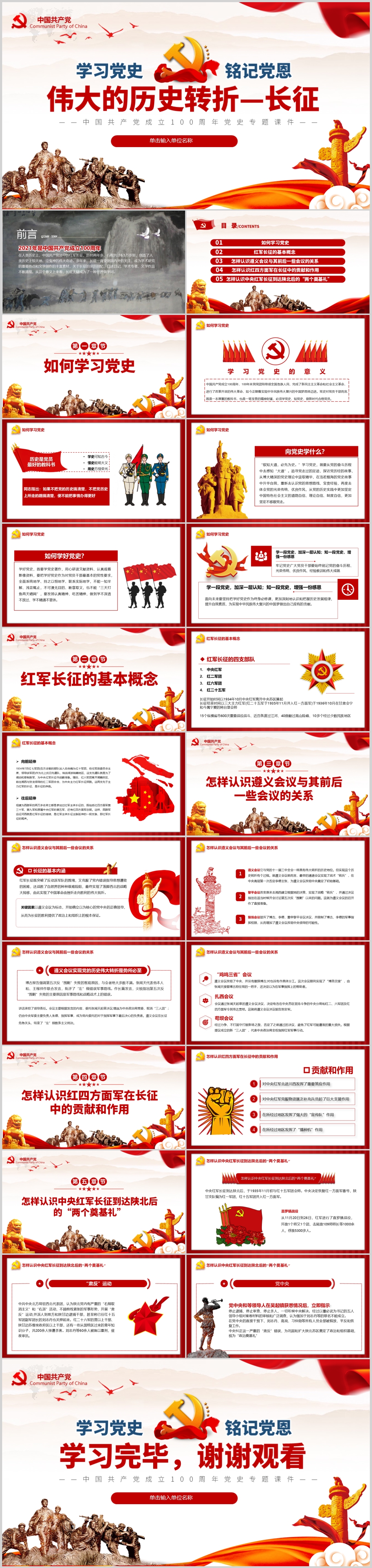 建党100周年伟大的历史转折长征党史党课PPT模板