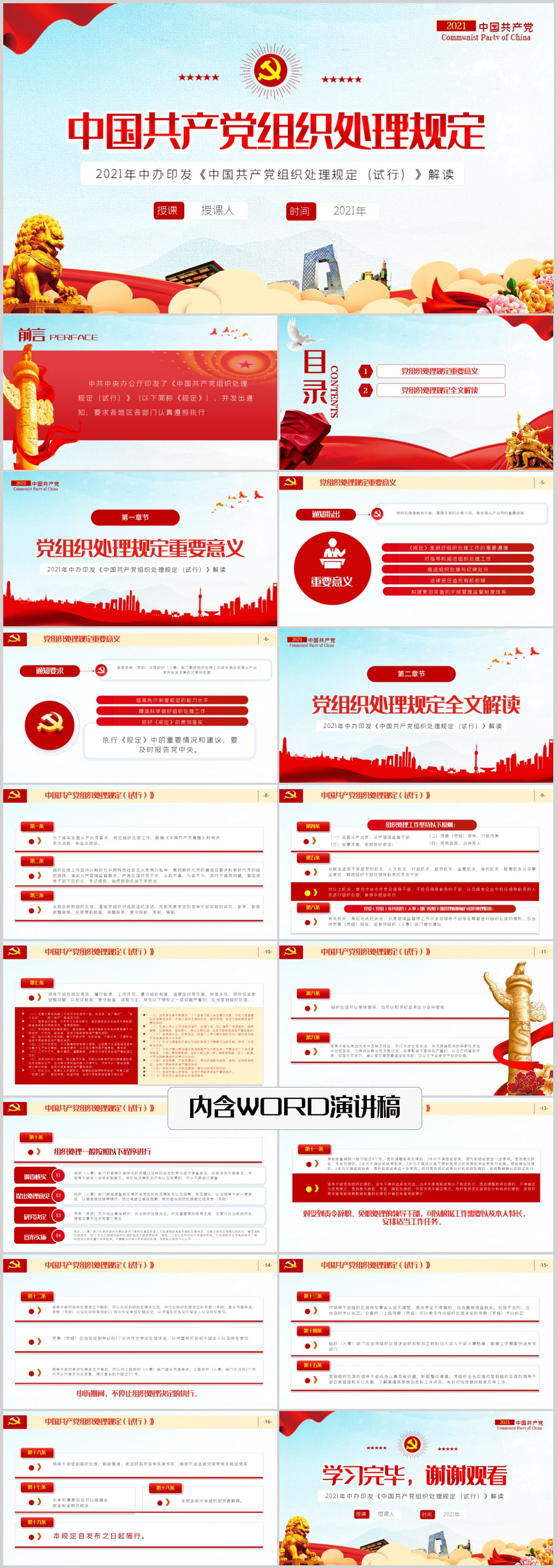 2021年中国共产党组织处理规定(试行)解读党课PPT模板(内含WORD演讲稿)
