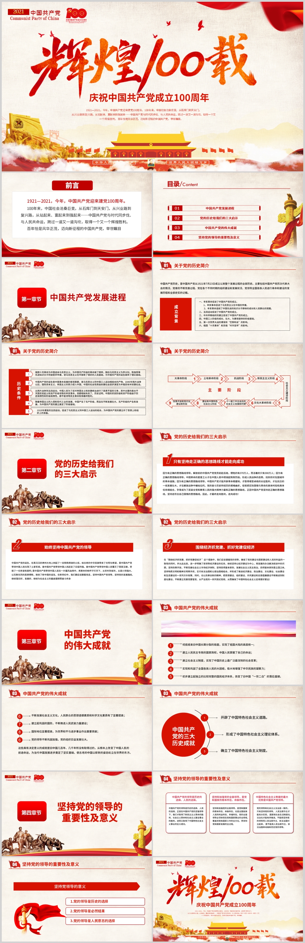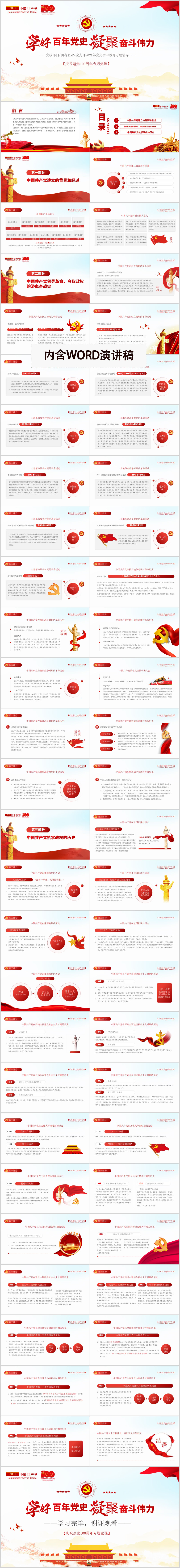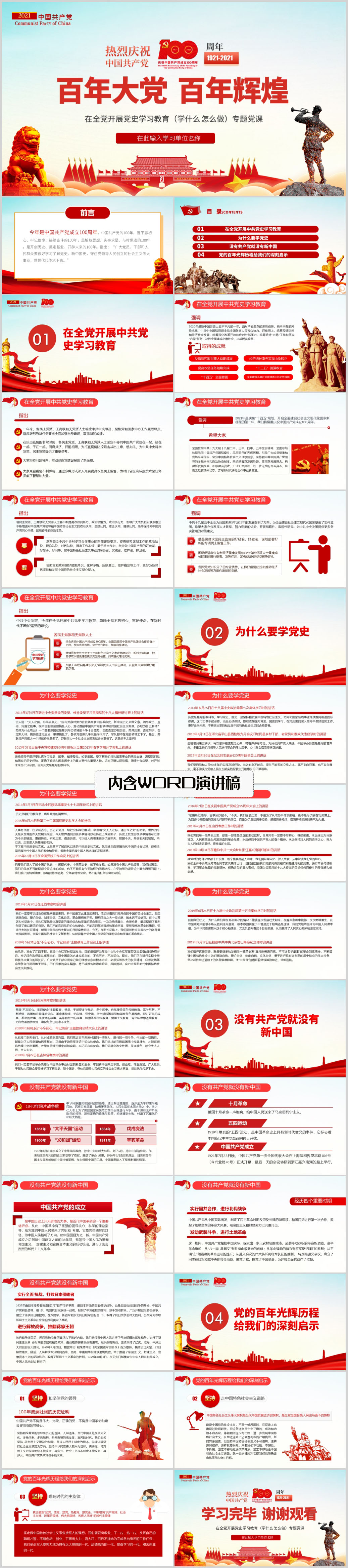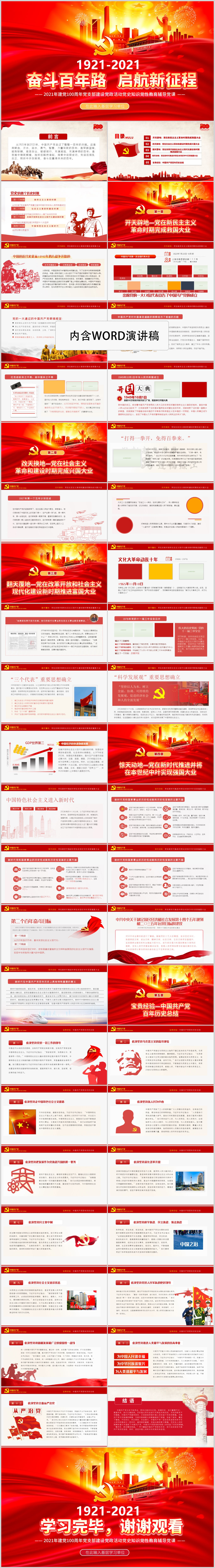 2021建党百年党史党建党课党政辉煌历程党史教育主题ppt模板(内含WORD演讲稿)