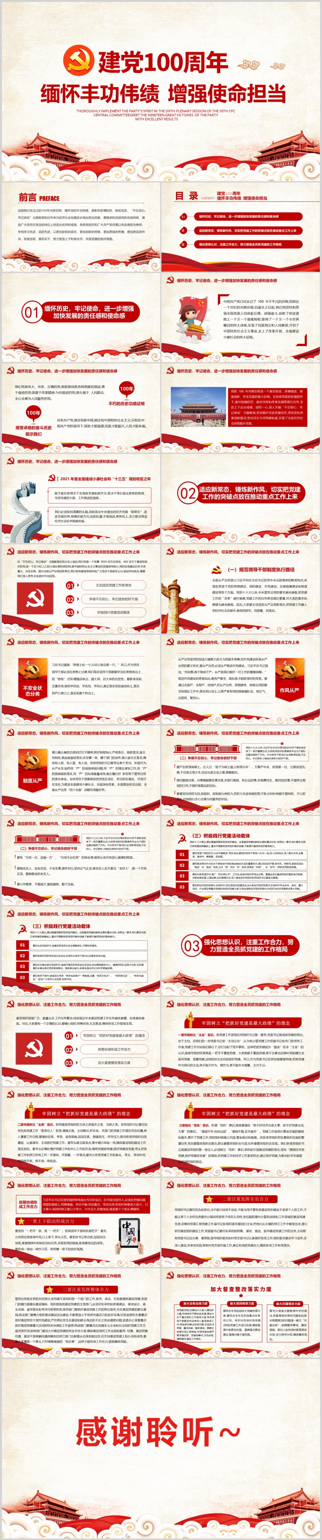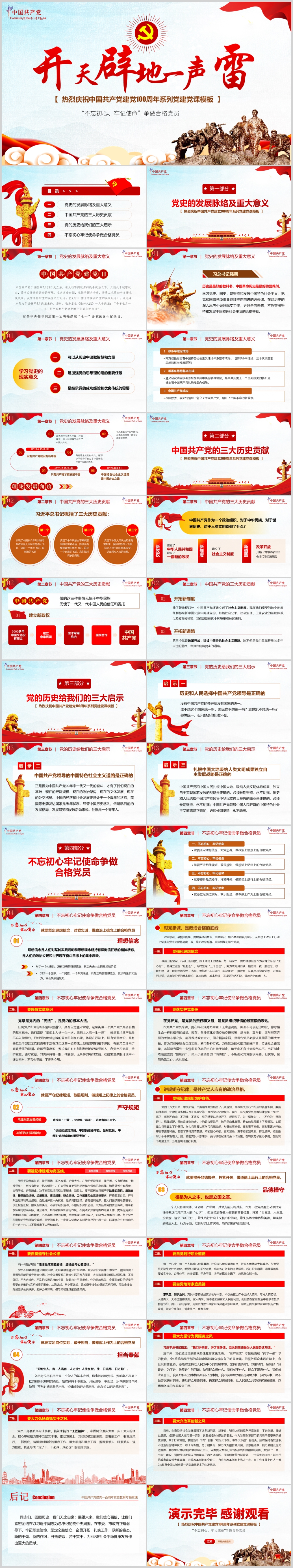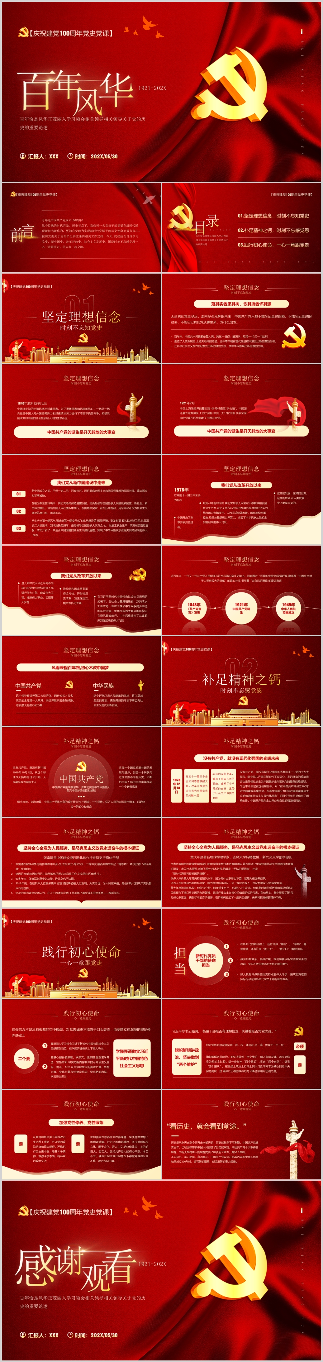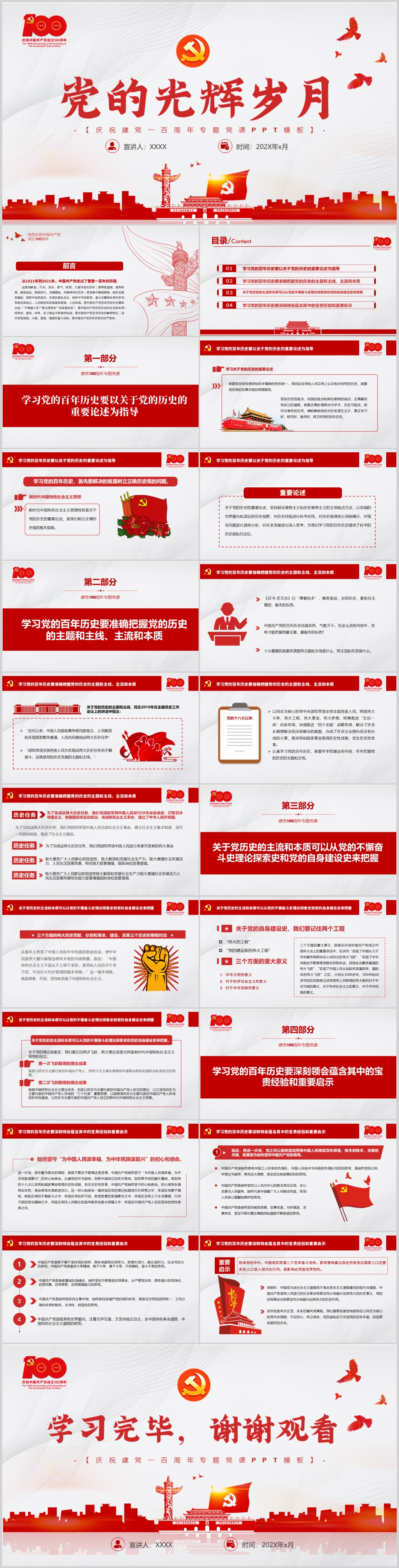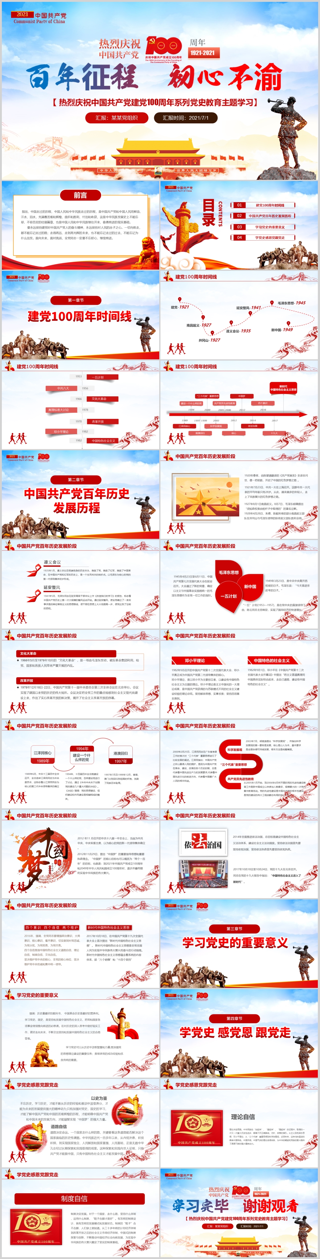 2021建党百年党史党建党课党政辉煌历程党史教育主题ppt模板(内含WORD演讲稿)