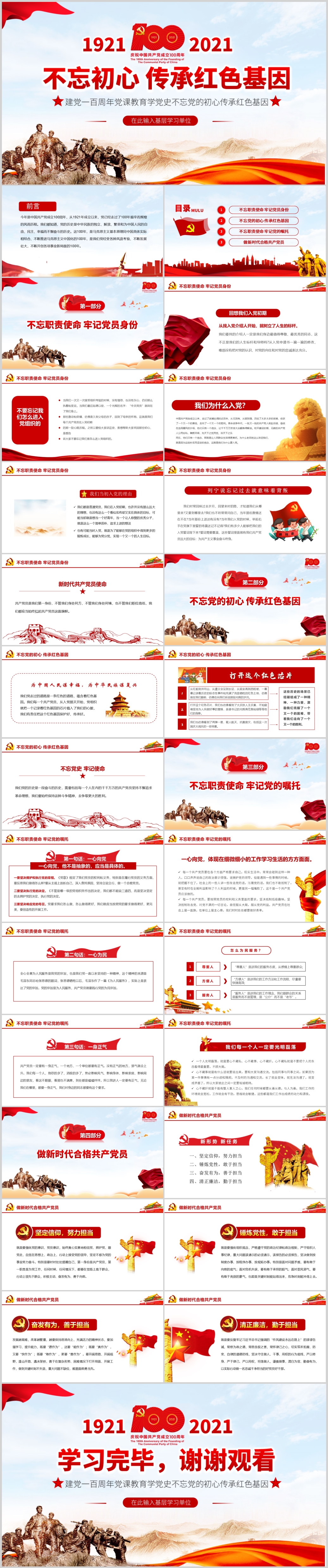 建党100周年牢记党的初心使命传承红色基因党史党课PPT模板