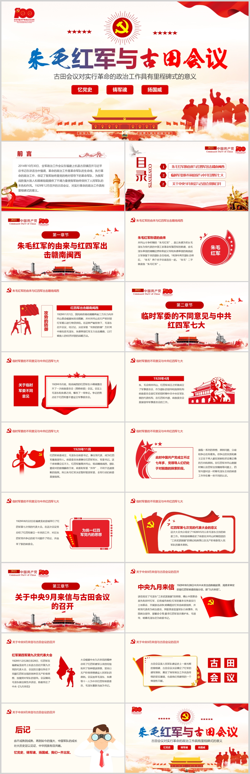学习七一建党100周年朱毛红军与古田会议党史教育专题党课PPT模板