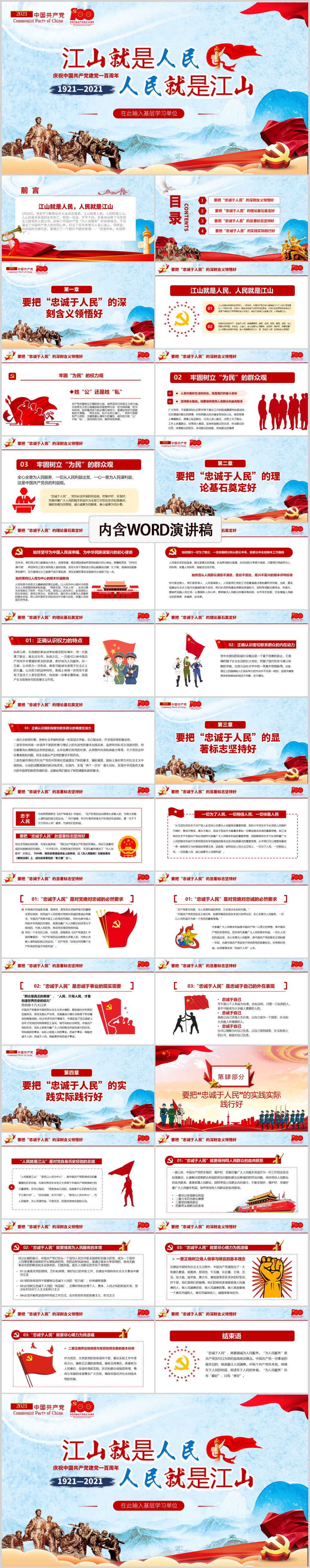 学习江山就是人民忠诚于人民党史学习教育建党100周年党课PPT模板(内含WORD演