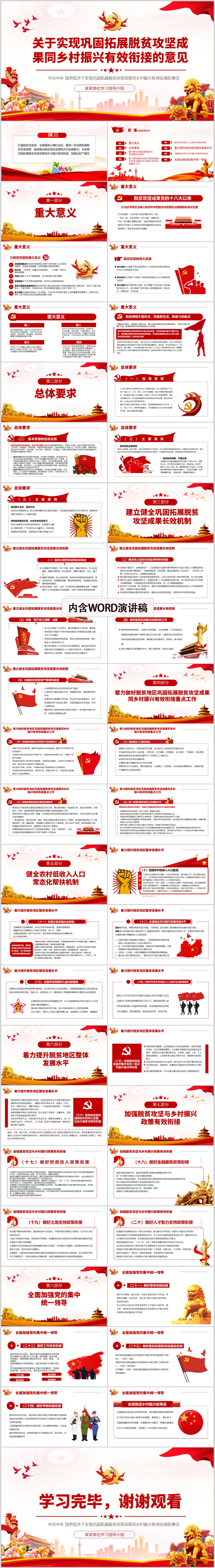 关于实现巩固拓展脱贫攻坚成果乡村振兴意见解读PPT模板(内含WORD演讲稿)