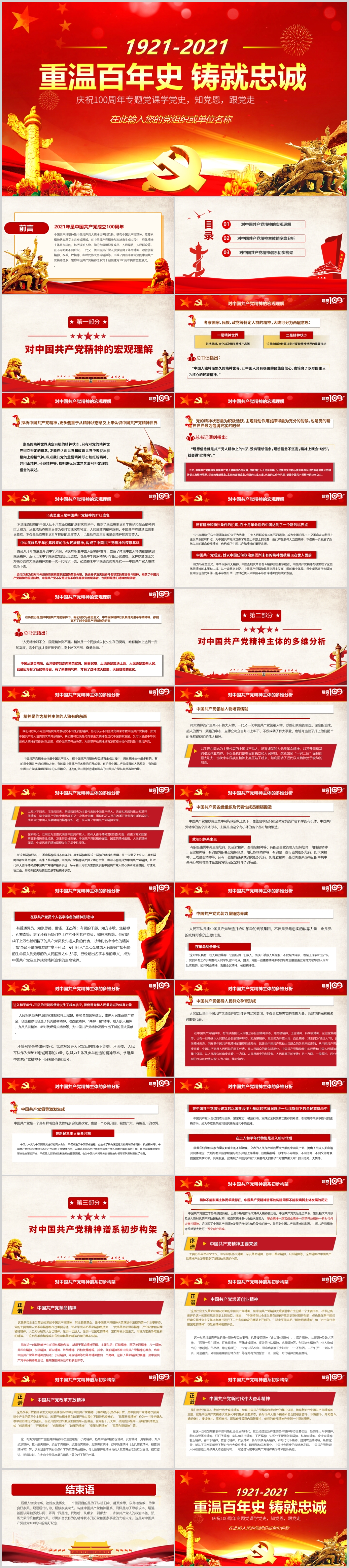 红的重温百年史铸就忠诚魂建党100周年党课PPT模板