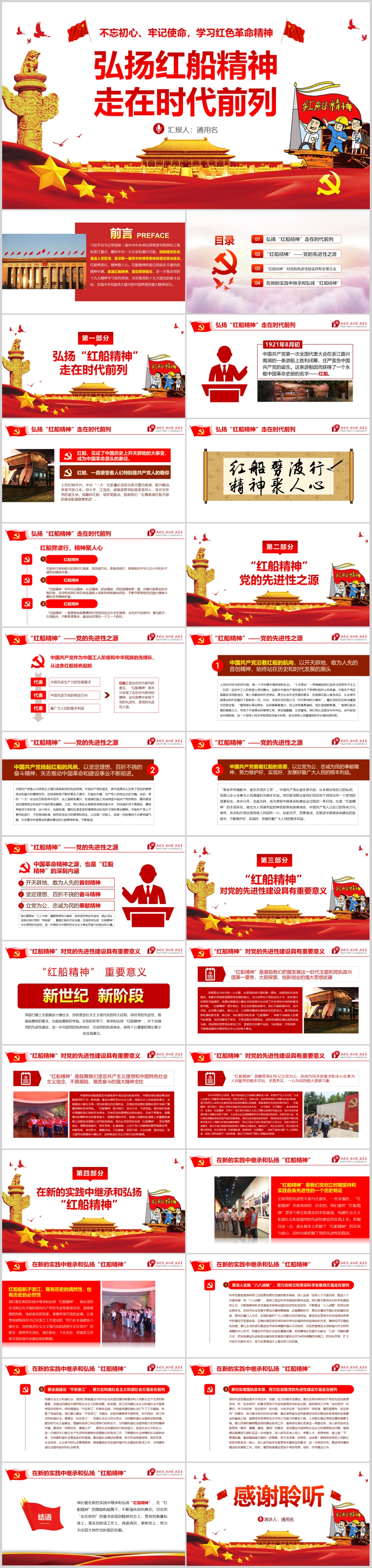 建党100周年传承红色革命精神弘扬红船精神党课PPT模板