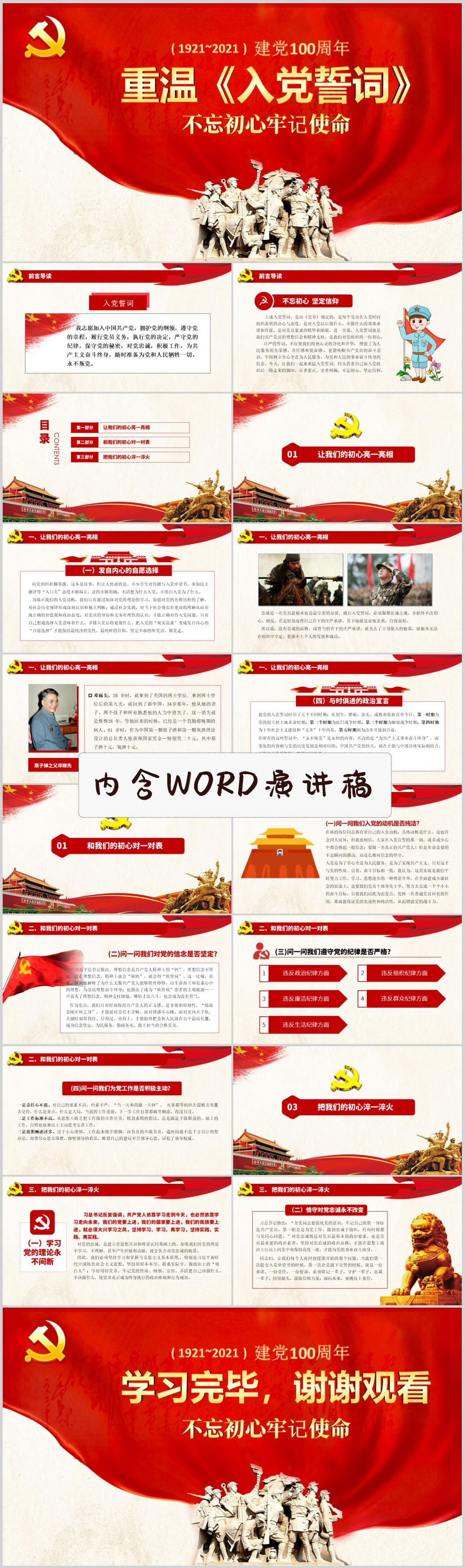 红色大气1921-2021重温入党誓词牢记初心使命建党100周年党课PPT模板(内含WQORD演