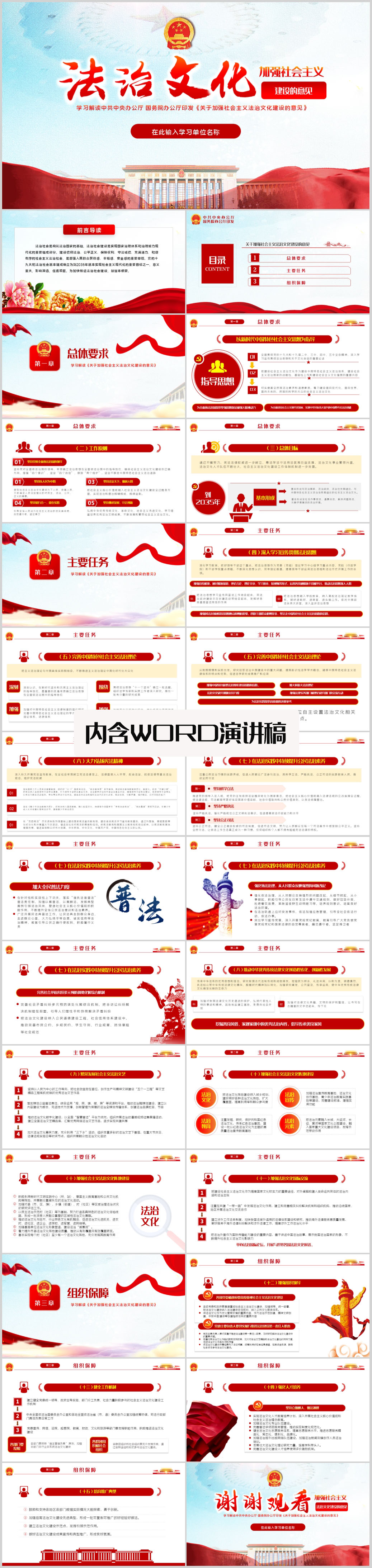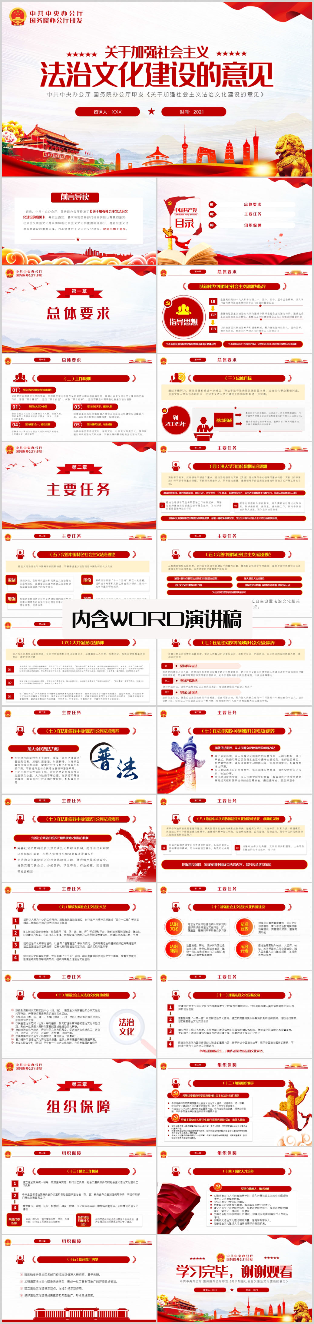 关于加强社会主义法治文化建设的意见ppt模板(内含WORD演讲稿)