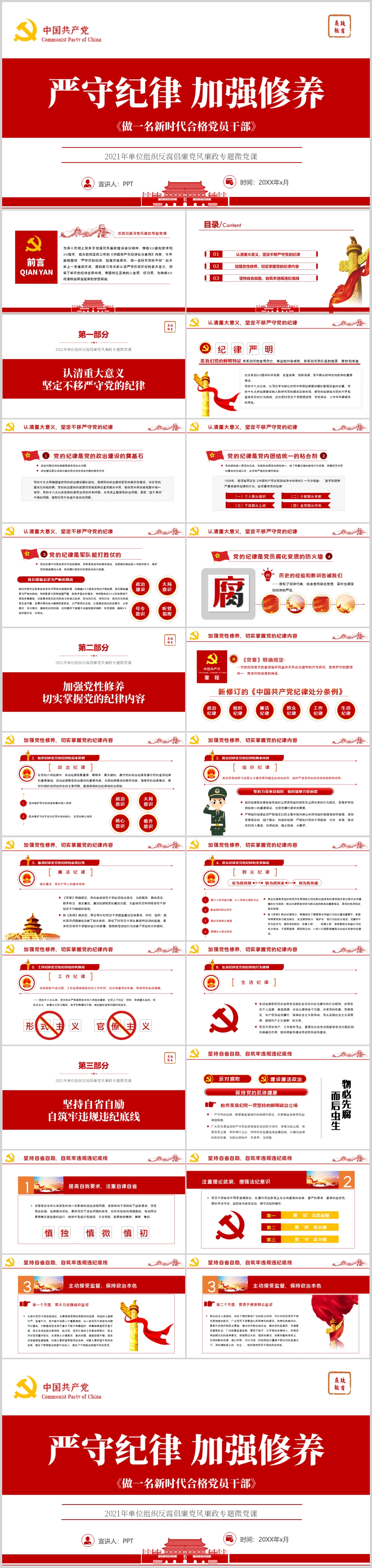 2021简约大气廉政党风作风严守党的纪律加强党性修养党风廉政党课PPT模板