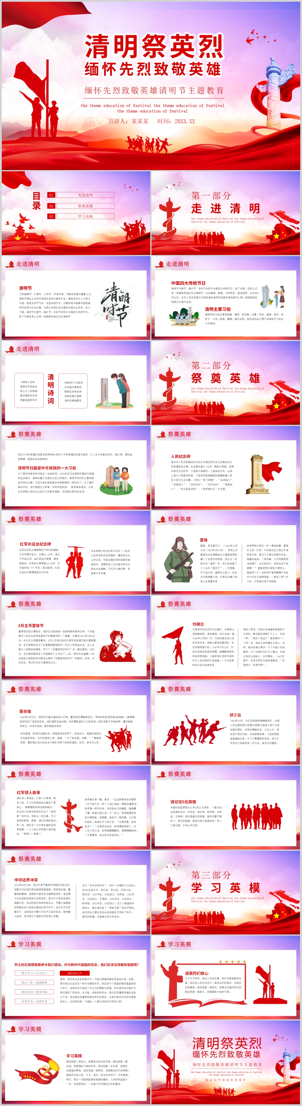 清明节踏青缅怀先烈清明校园教育主题班会课件PPT模板
