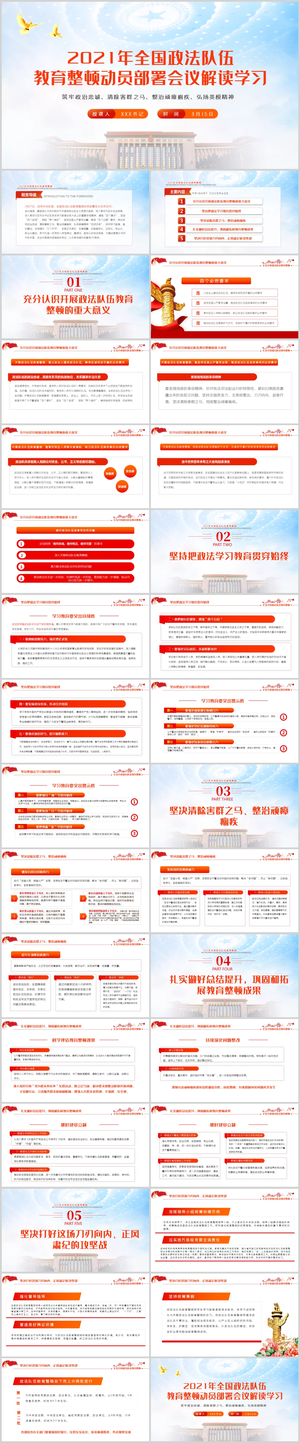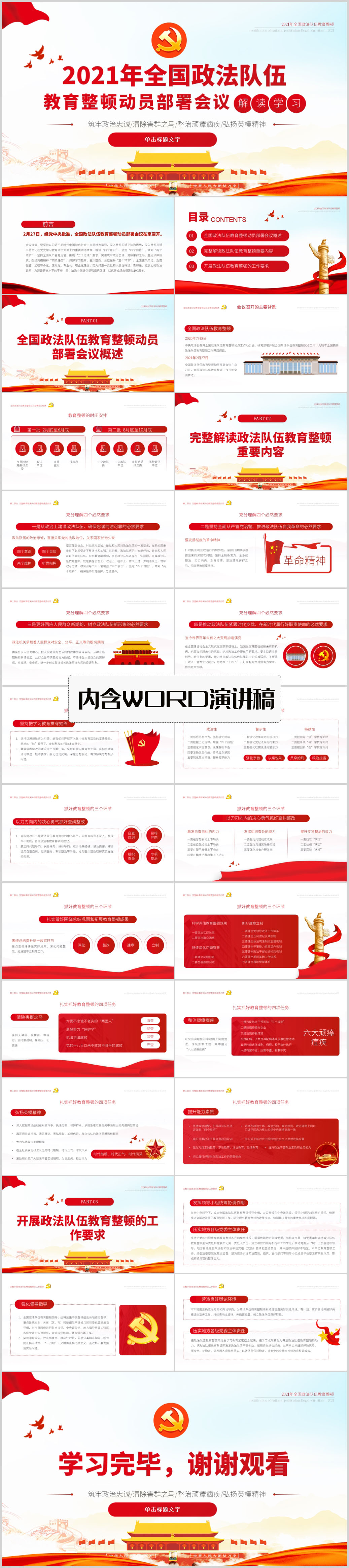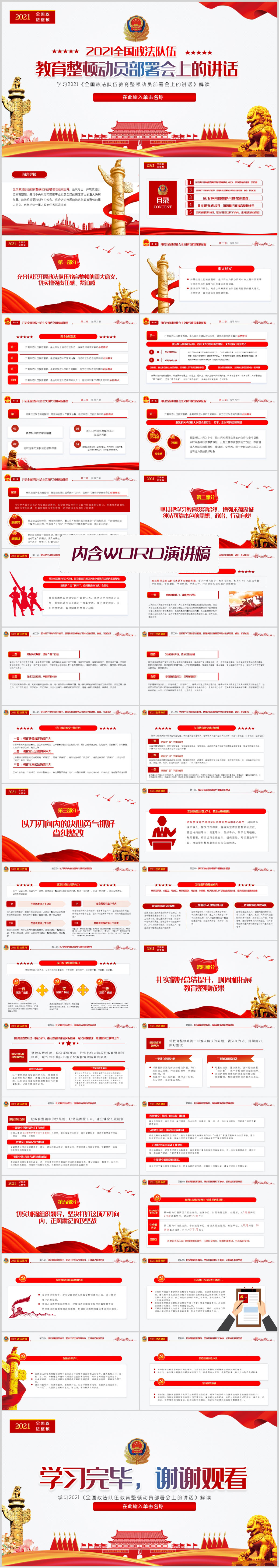 2021全国政法队伍教育整顿专题党课解读PPT模板(内含WORD演讲稿)