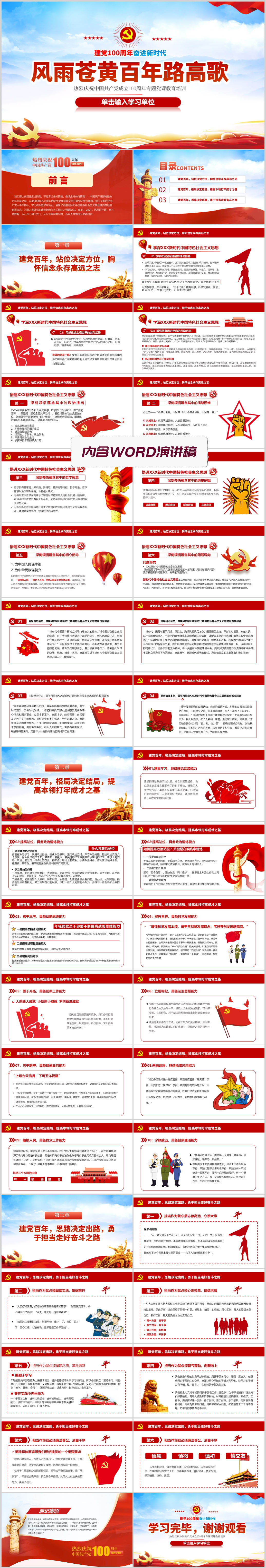 学习100周年风雨苍黄百年路高歌奋进新征程党史教育党课PPT模板(内含WORD演讲
