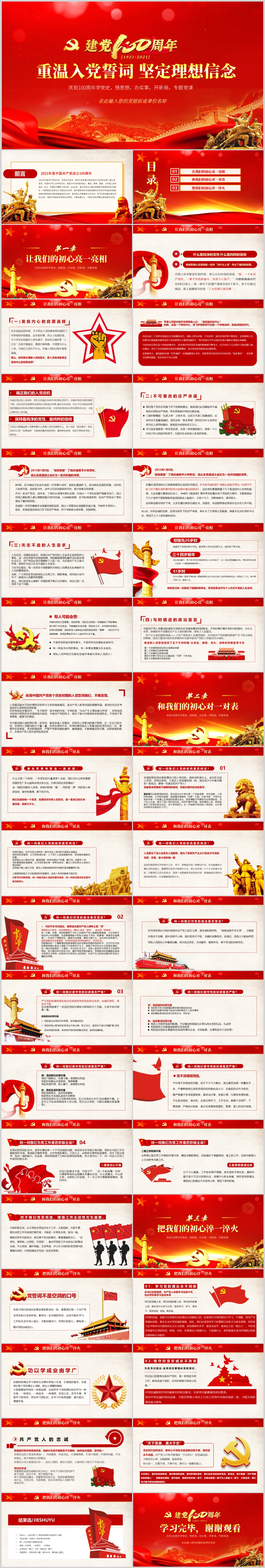 红色建党100周年重温入党誓词党史教育主题专题党课PPT模板