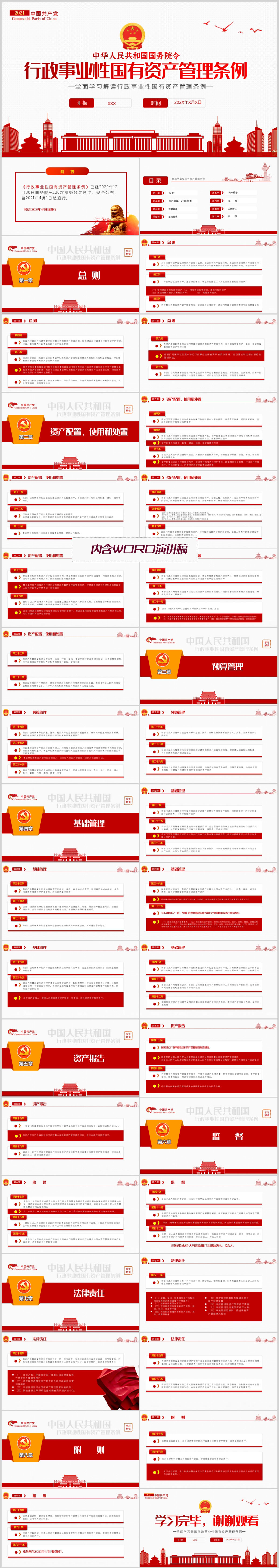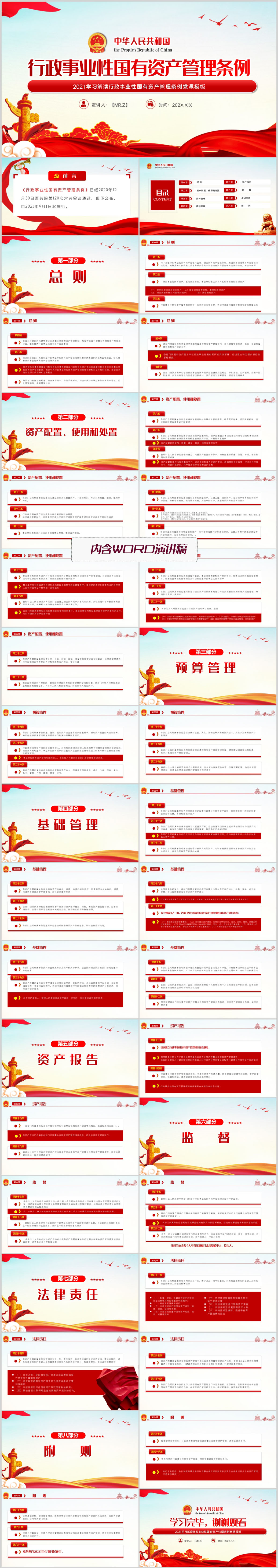 2021年行政事业性国有资产管理条例学习解读党课PPT模板(内含WORD演讲稿)