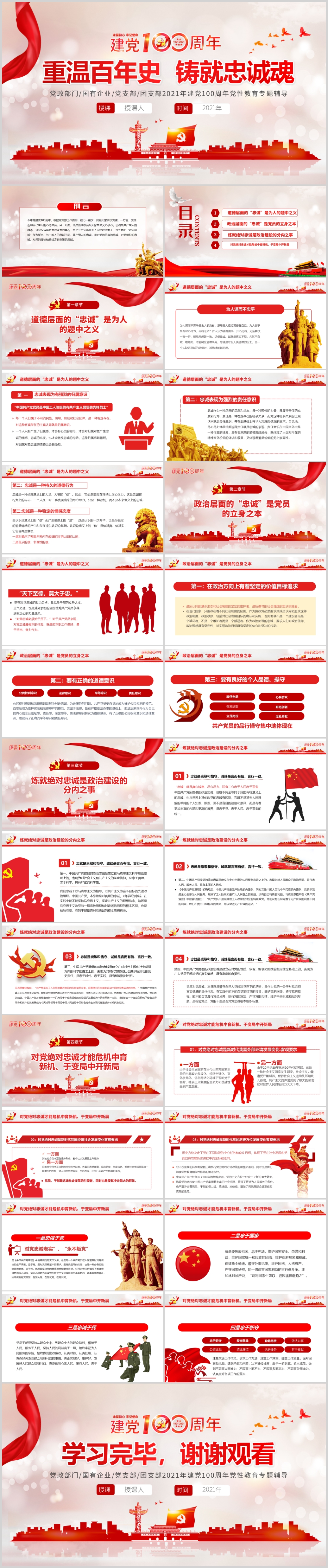 学习建党100周年重温百年史铸就忠诚魂专题党课PPT模板(内哈WORD演讲稿)