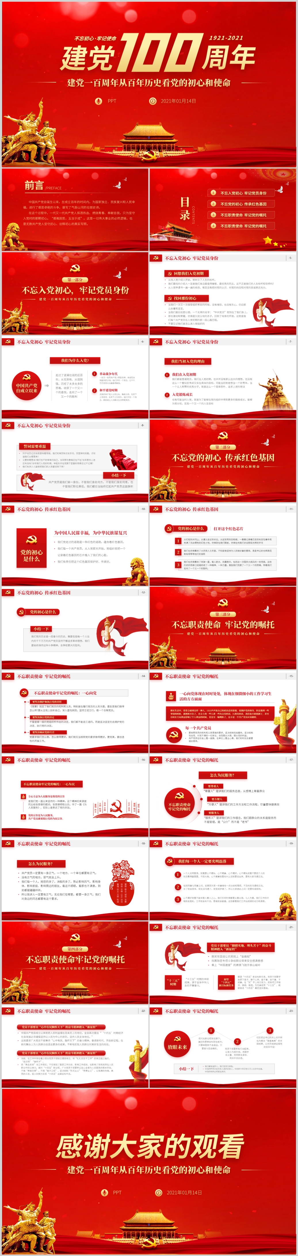 学习红色建党100周年重温党的百年初心使命党课PPT模板