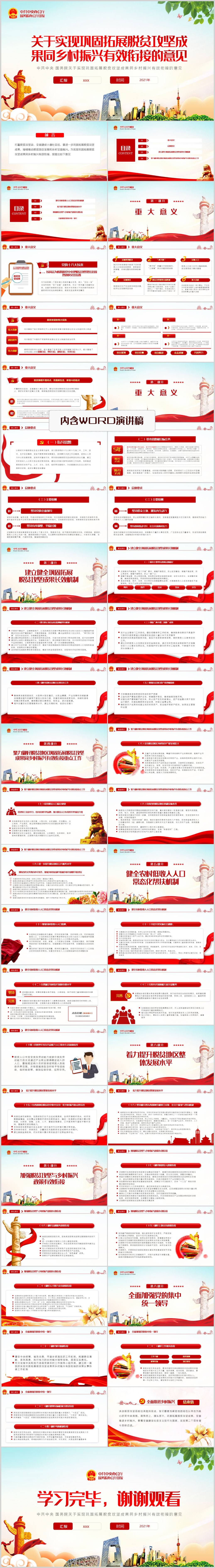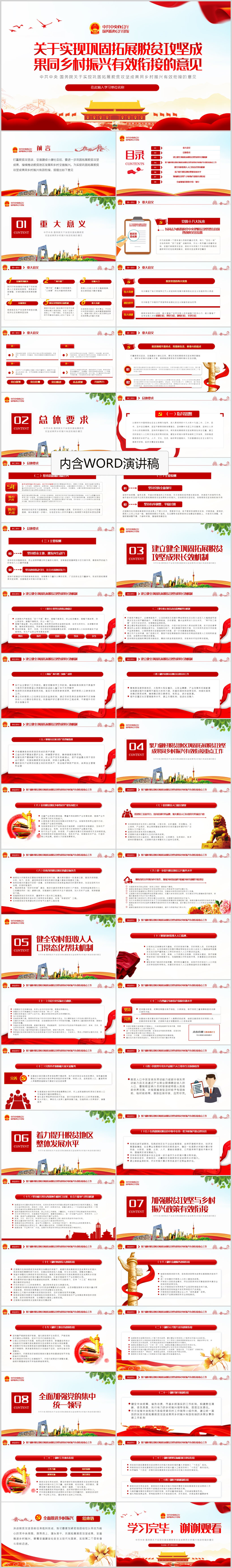 关于实现巩固拓展脱贫攻坚成果同乡村振兴有效衔接的意见ppt模板(内含WORD演讲