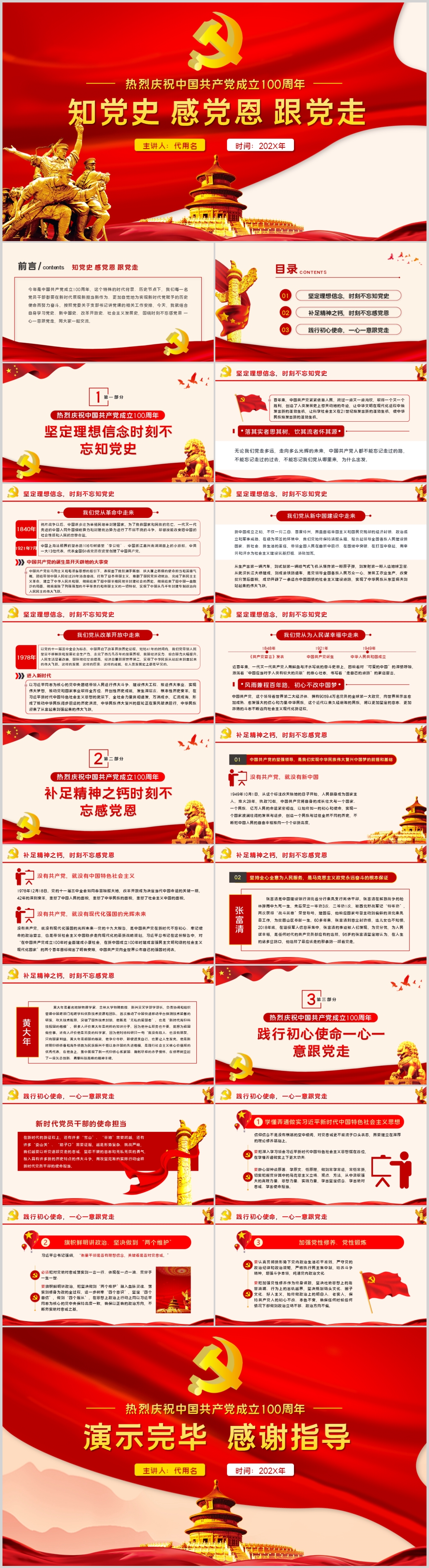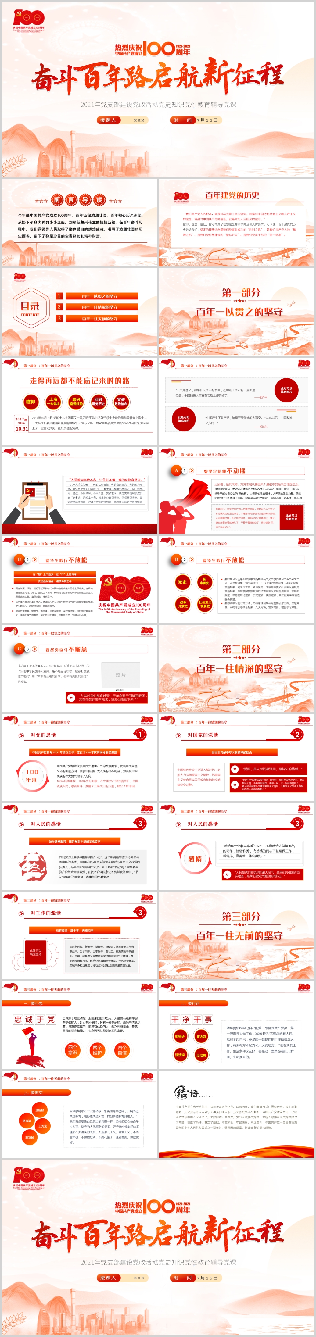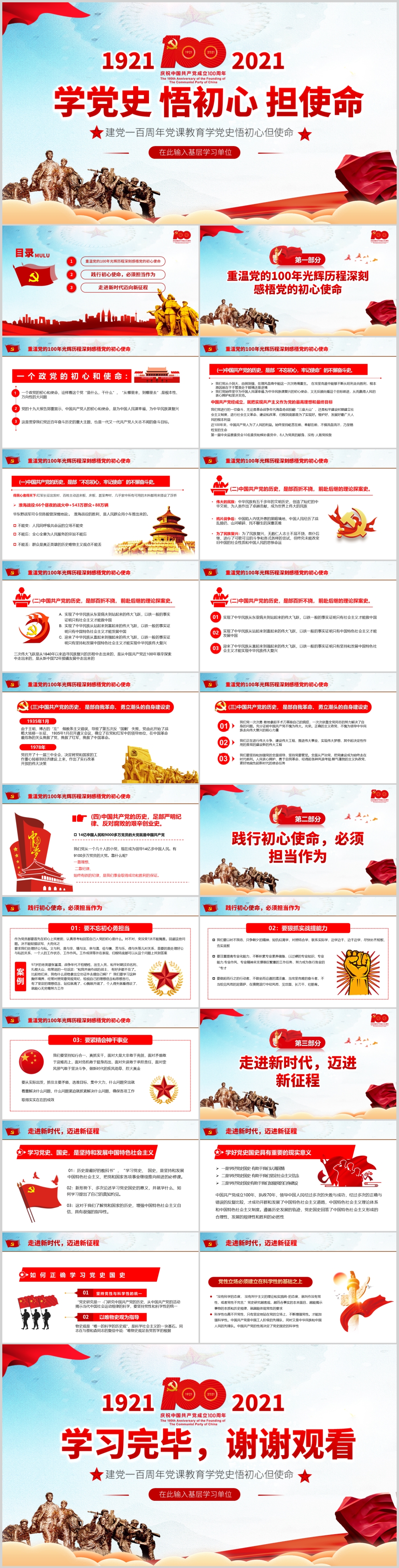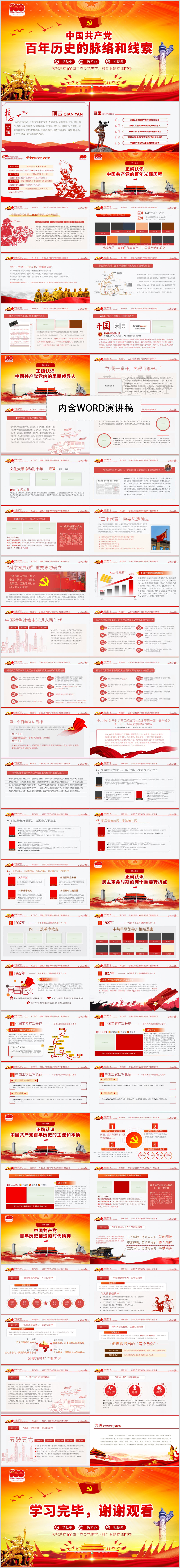 中国共产党的百年历史脉络和线索党史教育党员党课PPT模板(内含WORD演讲稿)