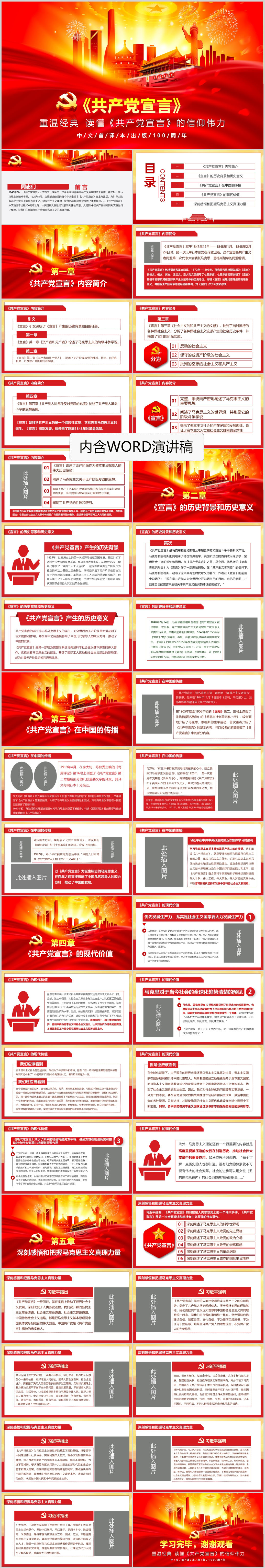 学习重温共产党宣言中文首译本100周年专题党课PPT模板(内含WORD演讲稿)