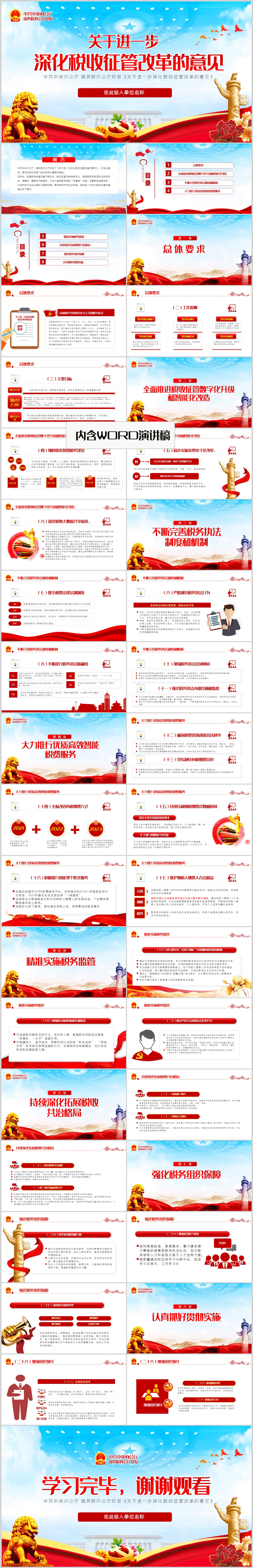 关于进一步深化税收征管改革的意见ppt模板(内含WORD演讲稿)