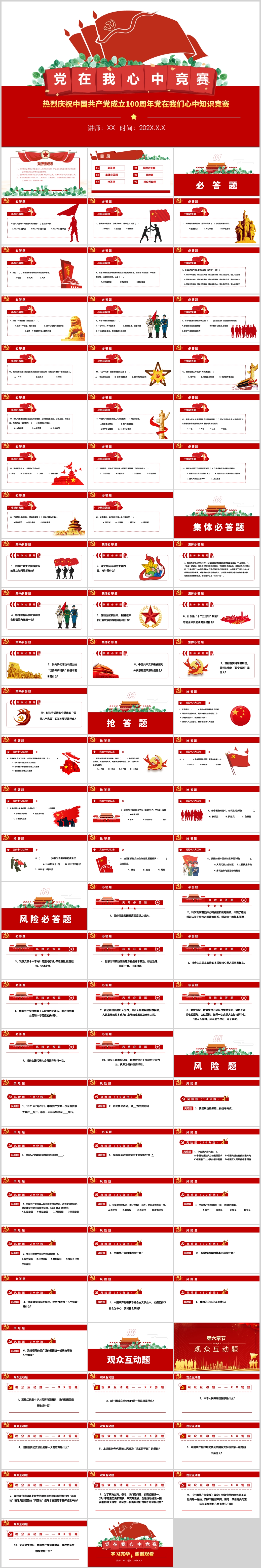 学习党在我心中知识竞赛建党100周年党课PPT模板
