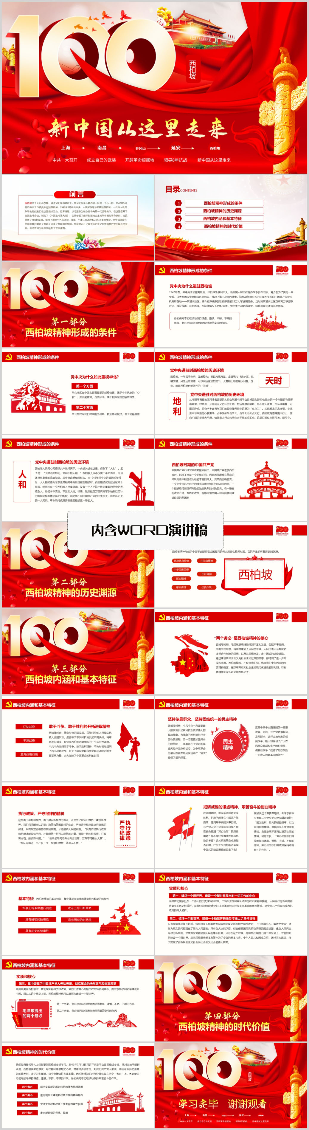 新中国从这里走来西柏坡精神建党百年党史学习专题党课PPT模板(内含WORD演讲