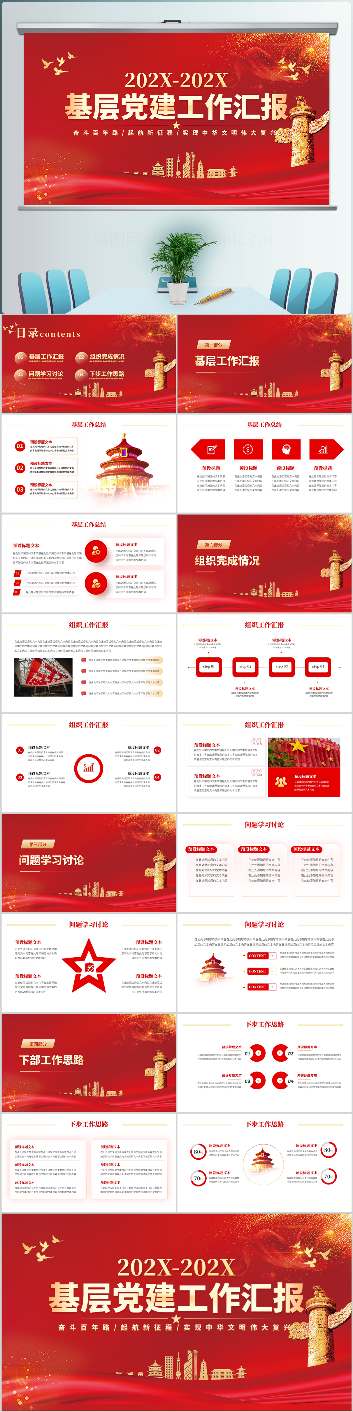 2025红色基层党建工作汇报总结思路通用ppt模板