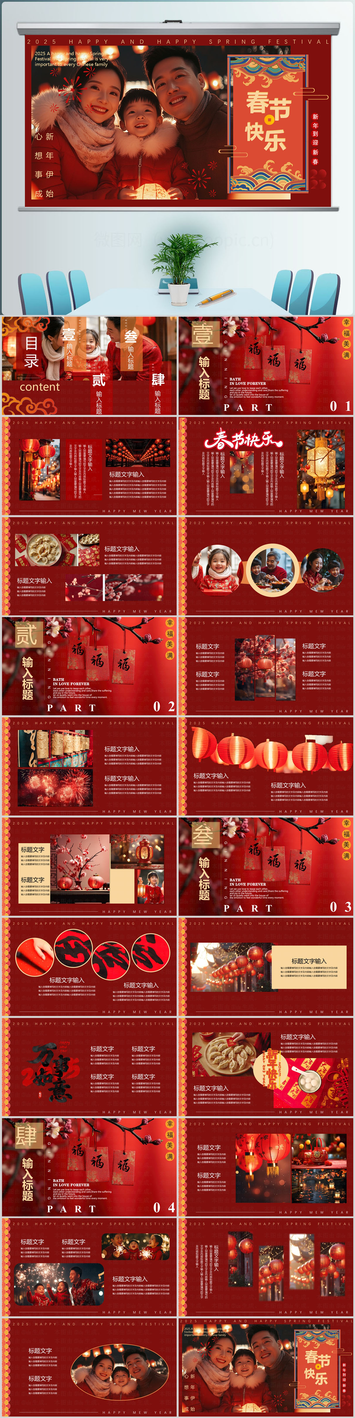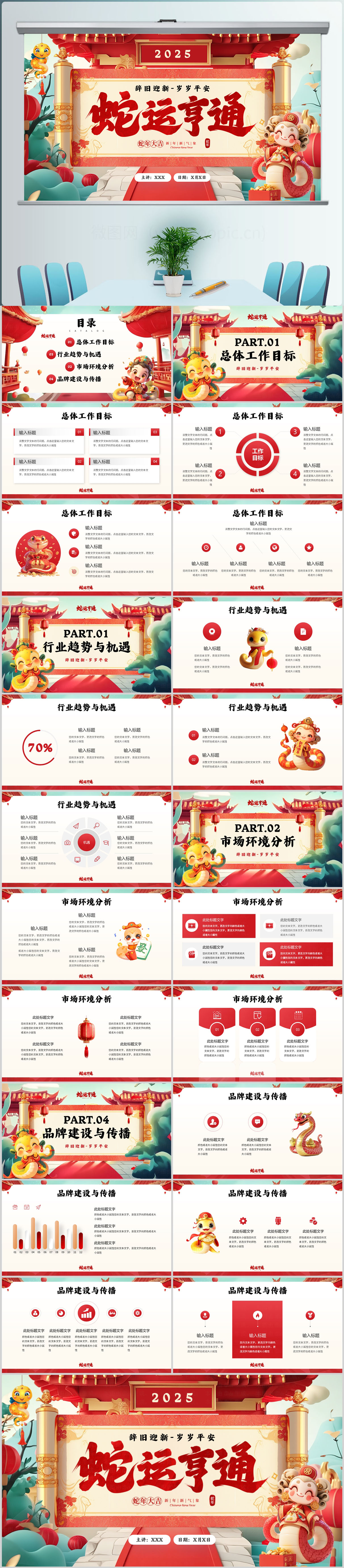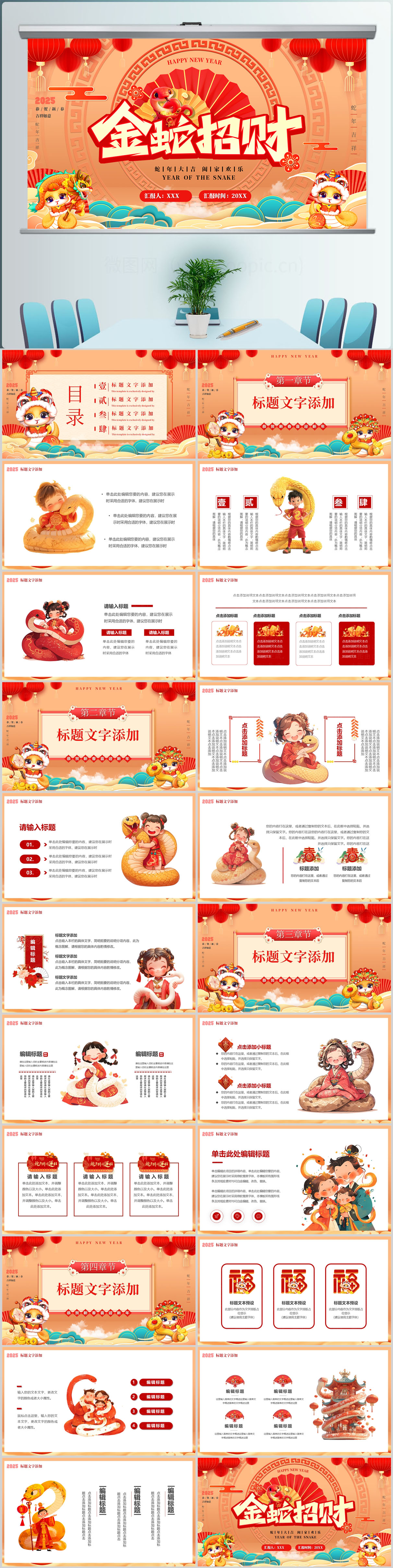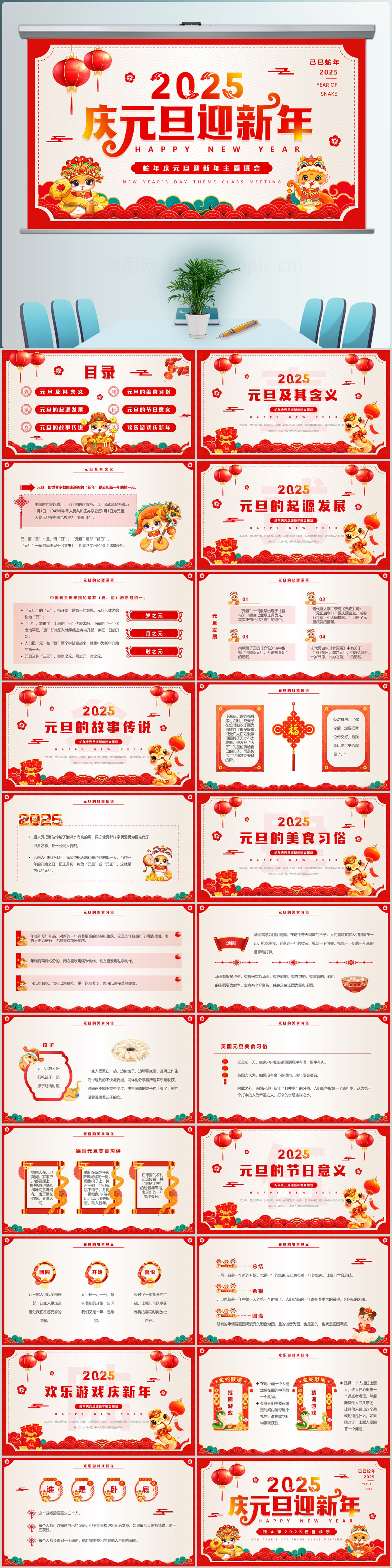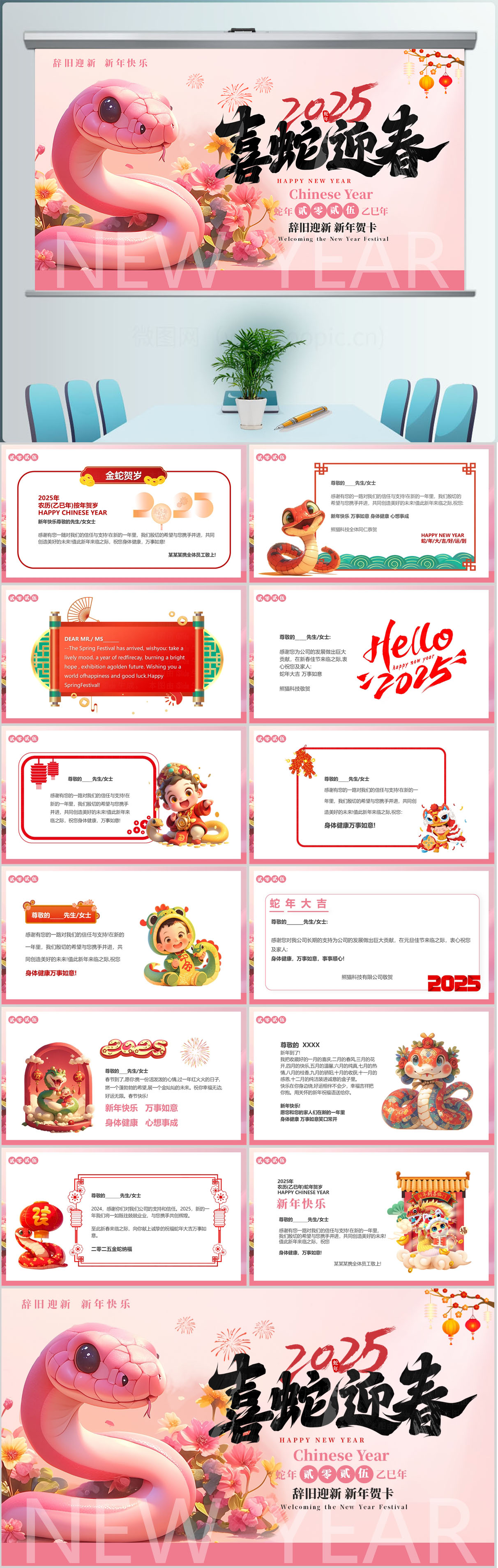2025蛇年贺新年元旦新年拜年贺卡PPT模版设计