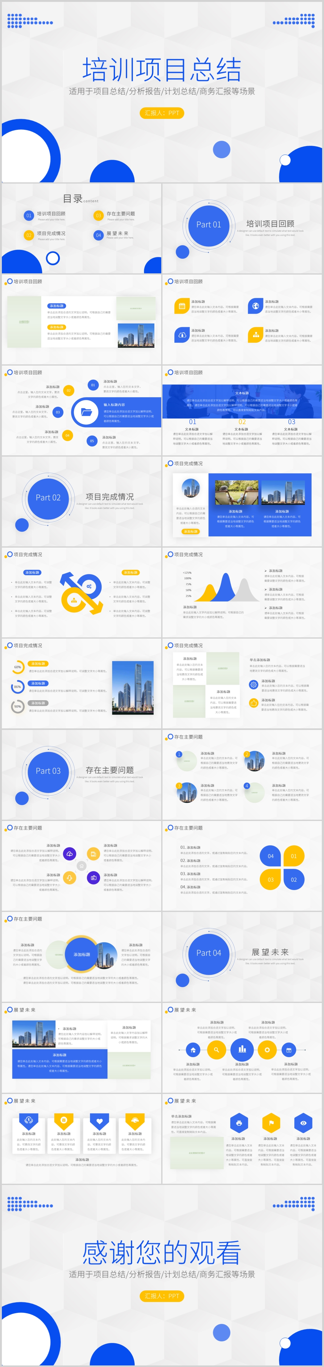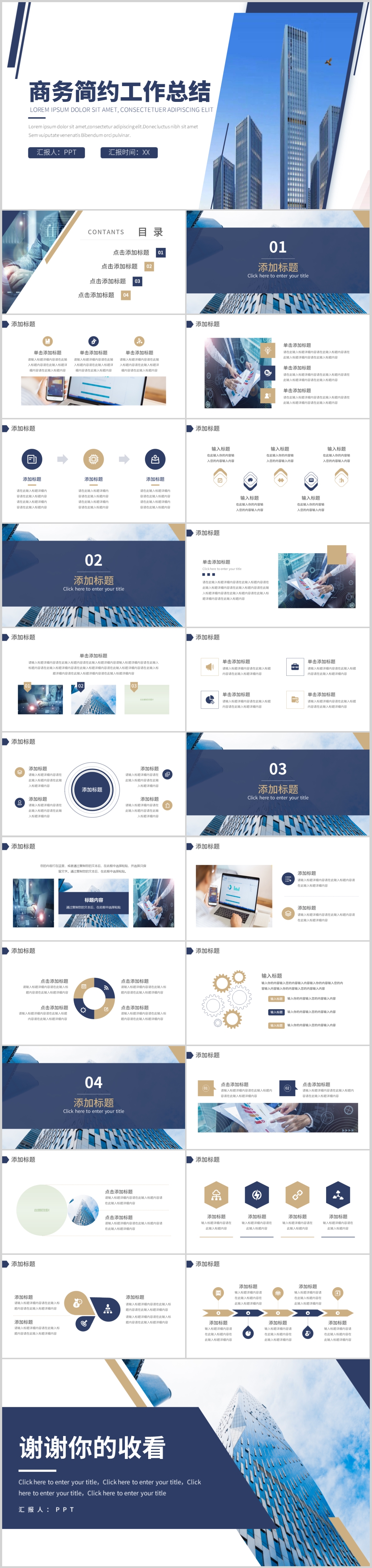 企业工作总结简约商务蓝色科技汇报PPT模板