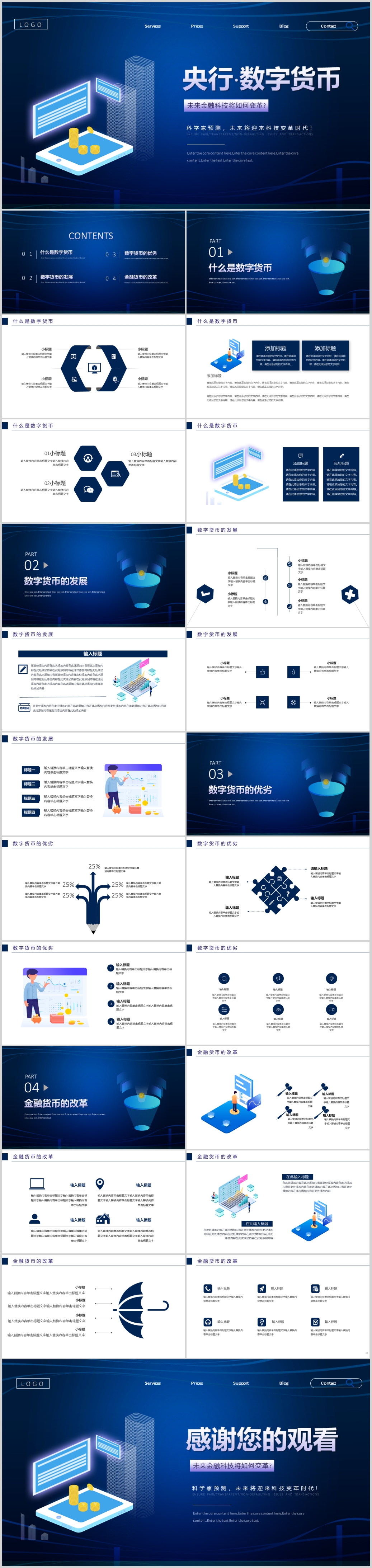 蓝色互联网商务科技数字货币简介介绍动态PPT模板