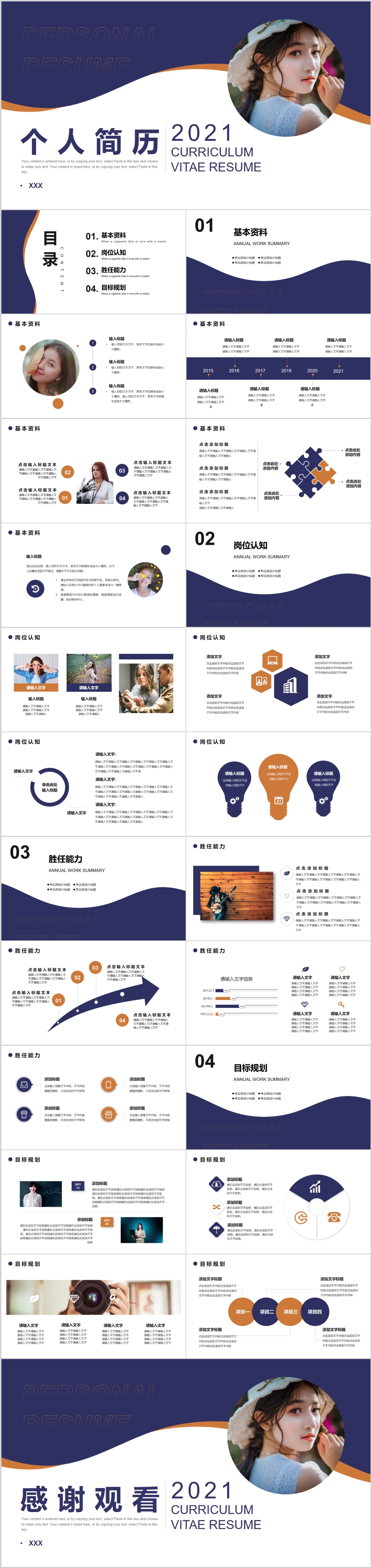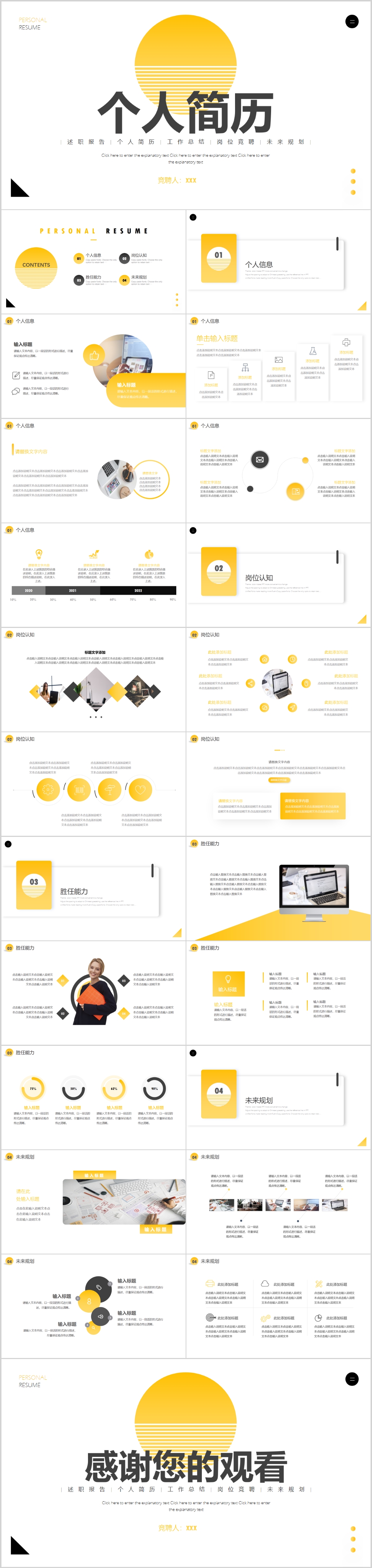 渐变黄色简约个人简历求职竞聘动态PPT模板