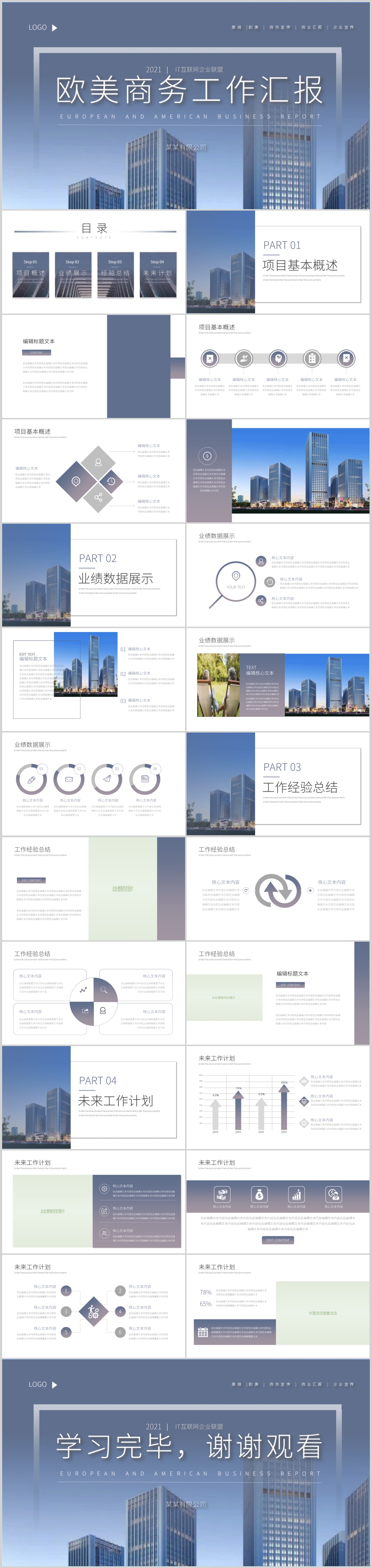 简约大气欧美风企业商务年中工作总结汇报PPT模板