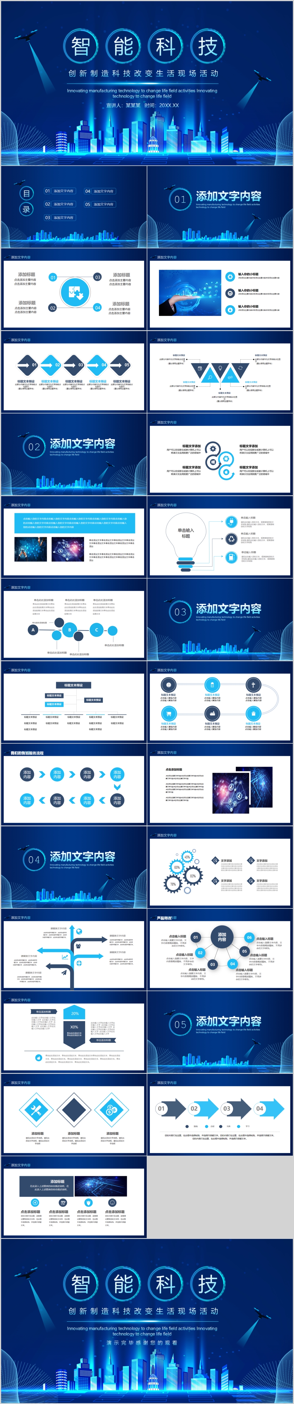 蓝色策划简约商务蓝色科技工作总结汇报PPT模板