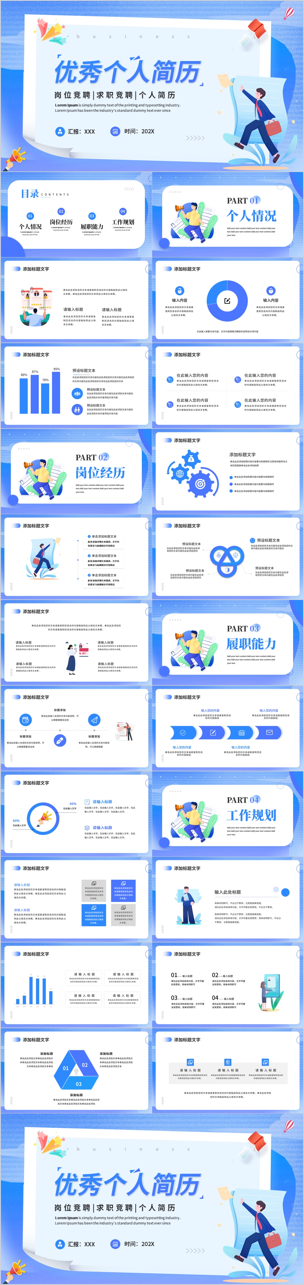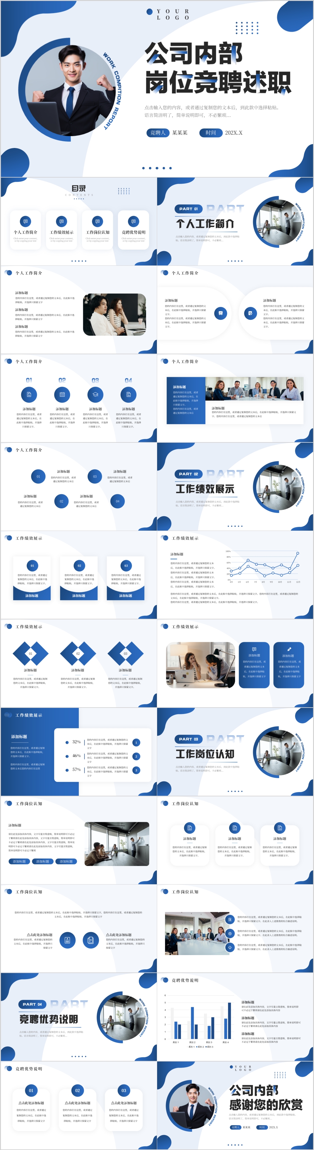 蓝色公司内部应聘岗位求职竞聘工作报告PPT模板