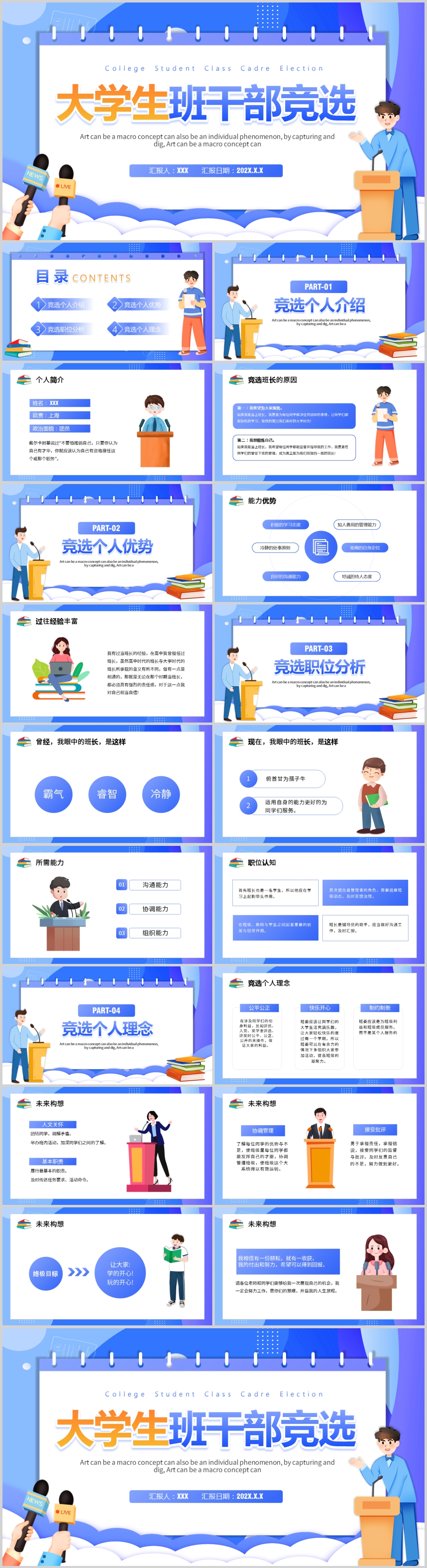 大学生中学生班干部竞选ppt模板