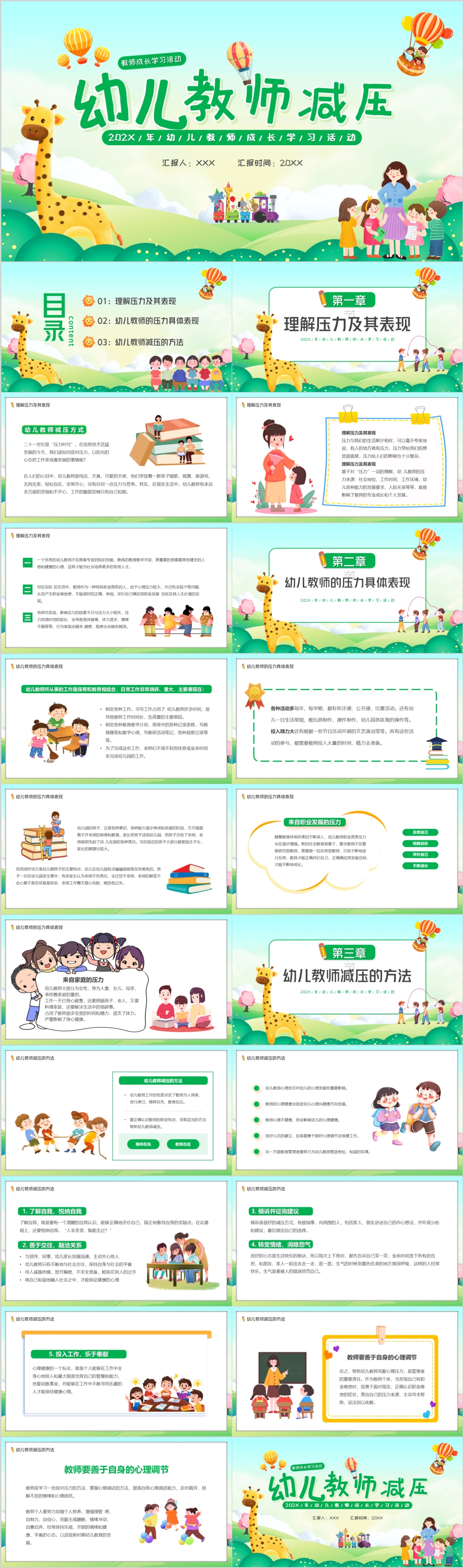 卡通幼儿教师减压的方法教师成长培训课件ppt模板