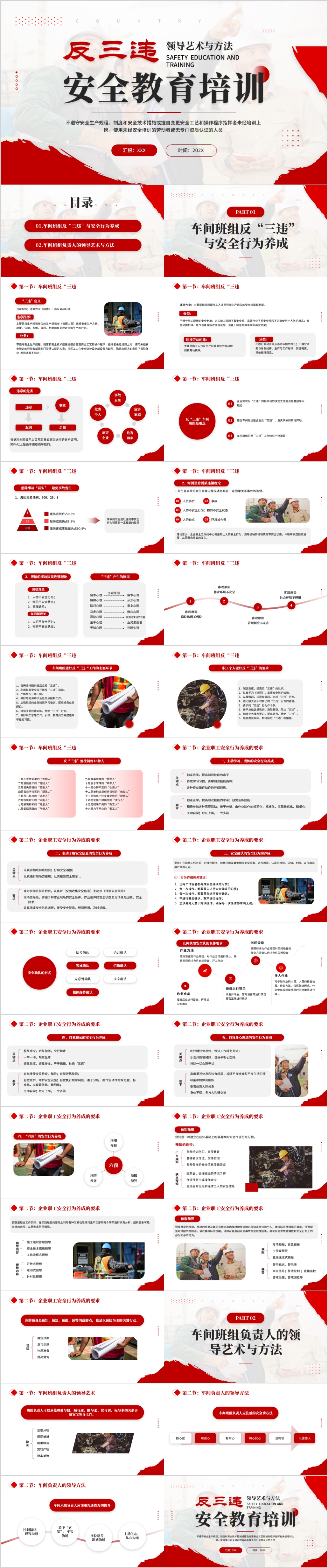 红色简约车间班组反三违安全生产教育培训课件ppt模板